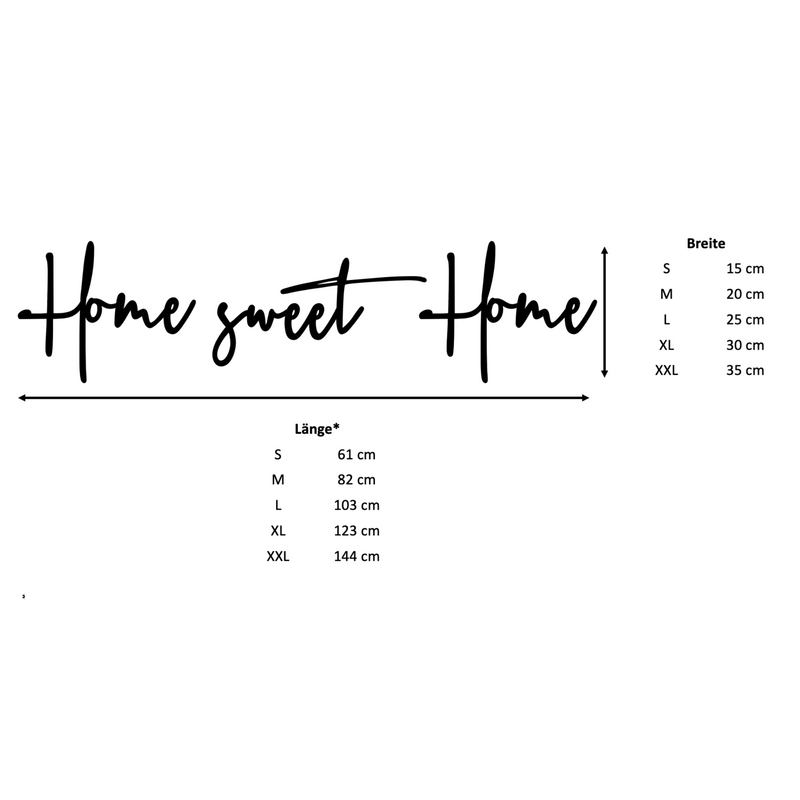 Willkommen daheim! Dieser niedliche \Home Sweet Home\ Schriftzug bringt Gemütlichkeit in deine vier Wände. Aus robustem Sperrholz gefertigt, in den Maßen 53 x 418 x 16 mm. Der klassische Spruch in schöner Schrift ist ein echter Hingucker in jedem Wohnzimmer, Flur oder Schlafzimmer. Einfach an die Wand hängen oder aufs Regal stellen - sofort fühlst du dich wie zuhause! Perfekt als Geschenk für Einzug, Geburtstag oder einfach so. Ohne zusätzliche Deko geliefert, damit du deine Kreativität frei entfalten kannst. Mach dein Zuhause noch persönlicher und gemütlicher mit diesem zeitlosen Wandaccessoire. Einfach, aber wirkungsvoll - genau das Richtige für alle, die ihr Zuhause lieben!