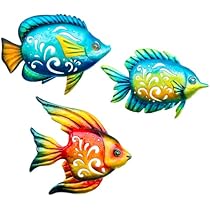 Diese süßen Metall-Fische bringen Meer-Feeling in dein Zuhause! 4 Stück in verschiedenen Farben: Grün, Gelb, Lila und Rot - wie echte Clownsfische! Jeder Fisch 22,8x15cm (9x5,9 Zoll) - die perfekte Größe für Wände. Aus robustem Eisen mit hochwertigem Sprühlack - verblasst nicht und rostet nicht. Mit Haken auf der Rückseite - einfach überall aufhängen! Perfekt für Badezimmer, Zaun, Pool, Terrasse, Balkon oder Restaurants. Auch super als Geschenk für Meer-Liebhaber! Einfach aufhängen und Meer-Atmosphäre genießen!