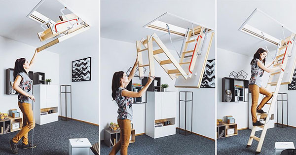 • Wandmontierte Klapptreppe Dachbodenleiter - Ausziehbare Leiter Bis 300cm