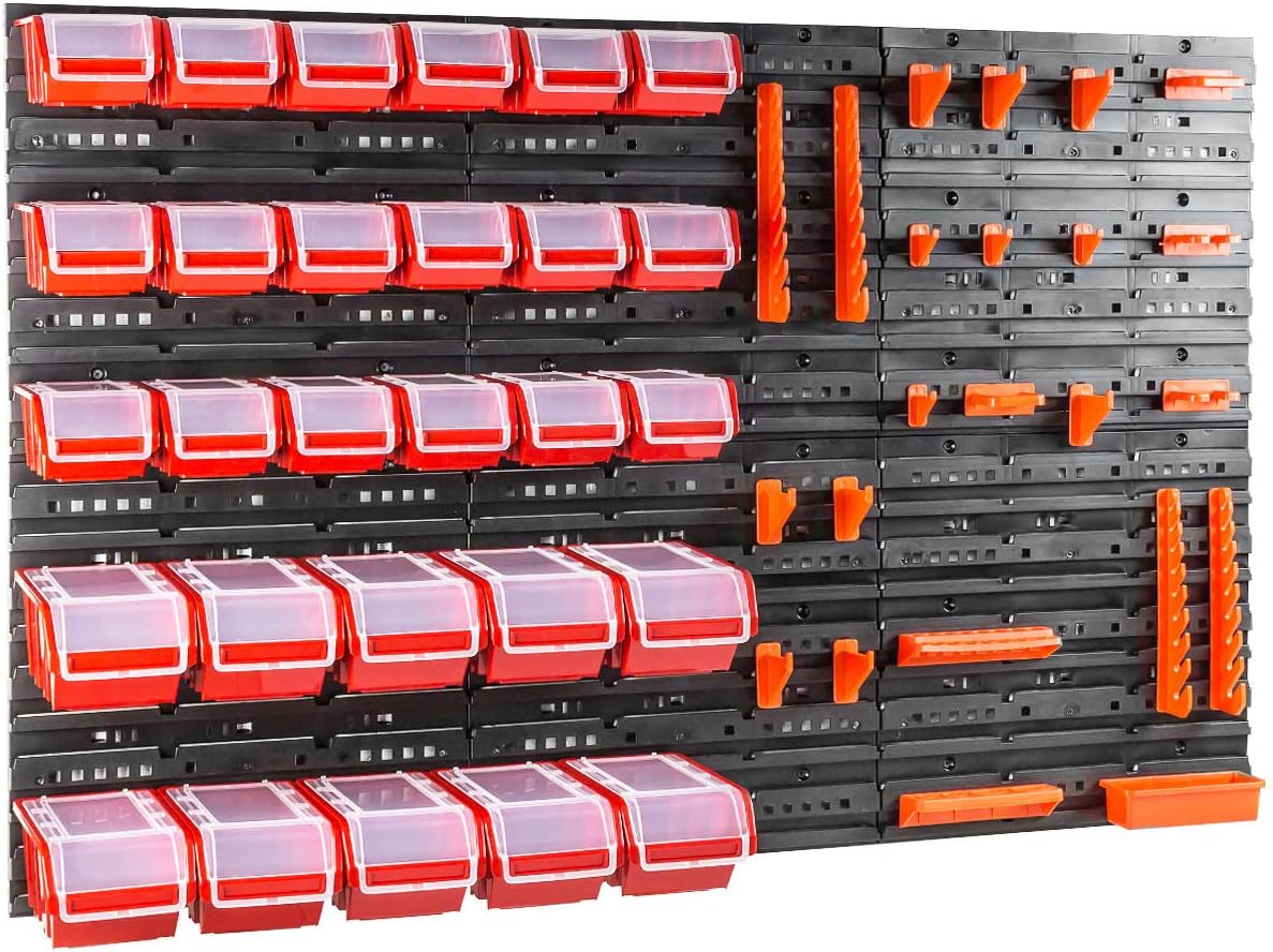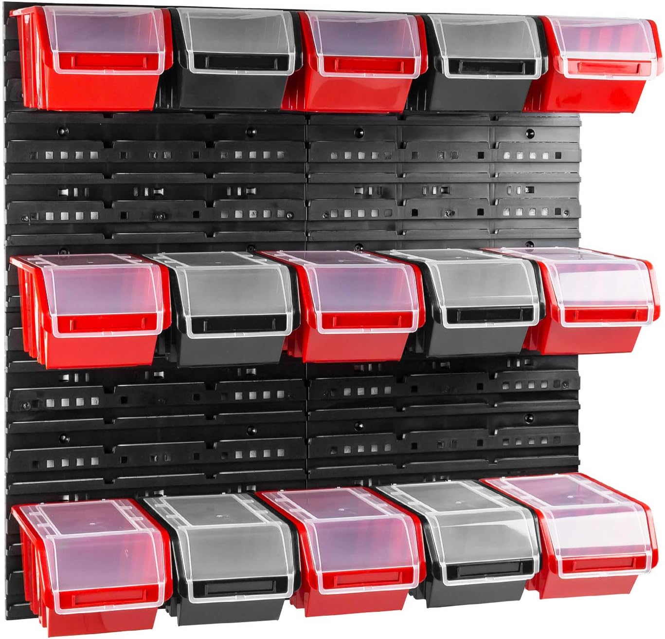 Endlich Ordnung in Werkstatt und Garage! Dieses praktische Wandregal bringt System in dein Chaos. Mit 24 stapelbaren Boxen in Rot und Schwarz - alles hat seinen Platz. Maße: 800x800mm - perfekt für jede Wand. Die Boxen sind 120x195x90mm groß - ideal für Schrauben, Nägel, Bits und Kleinteile. Mit Deckeln - schützt vor Staub und Feuchtigkeit. Einfache Wandmontage - keine komplizierte Konstruktion. Durch Stecksystem beliebig erweiterbar - wächst mit deinen Bedürfnissen. Aus stabilem Polypropylen - hält auch schweren Belastungen stand. Mit Etikettenfach - alles bleibt übersichtlich. Auch Werkzeuge lassen sich an den Lochwänden befestigen. Für Heimwerker, Sammler und Profis gleichermaßen. Hol dir das System und finde endlich alles sofort!