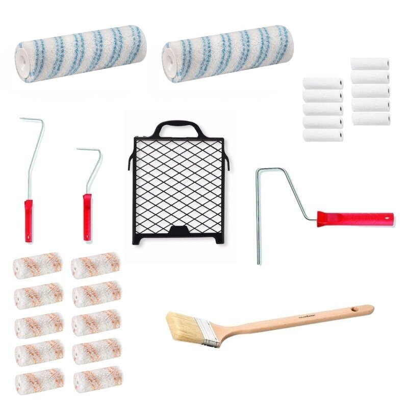 Du planst einen neuen Anstrich? Mit diesem Komplett-Set von ZOFUN hast du alles, was du brauchst! Enthalten sind: eine Farbwanne, verschiedene Farbroller (9 Zoll und 4 Zoll), ein Pinsel, Malerband, ein Farbrührer und sogar eine Verlängerungsstange für hohe Wände. Die Rollen sind aus fusselfreier Mikrofaser und halten mehr Farbe als herkömmliche Modelle – super für gleichmäßige Ergebnisse. Egal ob Wände, Decken, Möbel oder Türen – mit diesem Set meisterst du jedes Projekt. Die Teile sind waschbar und wiederverwendbar, also auch für mehrere Einsätze geeignet. Perfekt für Heimwerker, die Wert auf Qualität und Vollständigkeit legen. Einfach auspacken und loslegen – so macht Streichen Spaß!