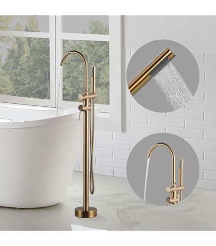 Wow, diese freistehende Badewannenarmatur von Artiqua wird dein Badezimmer zum Luxus-Spa! Aus massivem Messing gefertigt und in glänzendem Chrom veredelt, ist sie nicht nur super stylisch, sondern auch extrem langlebig. Mit 86,5cm Gesamthöhe und 23cm Auslaufreichweite passt sie perfekt zu jeder freistehenden Wanne. Das besondere Highlight: Die 360 Grad schwenkbare Handbrause mit 150cm langem Schlauch - ideal für entspannte Badeerlebnisse! Die Bodenmontage ist stabil und sicher, mit Halterung und 3 Schrauben für bombenfesten Halt. Die Ø35mm Sedal Keramikkartusche garantiert einen reibungslosen, langlebigen Betrieb und optimalen Wasserfluss. Besonders praktisch: Die 1,27cm Schlauchanschlüsse für besseren Wasserdruck - und falls du andere Schlauchgrößen brauchst, kannst du uns einfach kontaktieren! Mit max. 6 GPM für die Wanne und 2,5 GPM für die Handbrause hast du immer genug Wasserpower. Inklusive 5 Jahren Garantie - da kannst du beruhigt zugreifen! Einfach montieren und jeden Tag wie im Luxushotel baden!