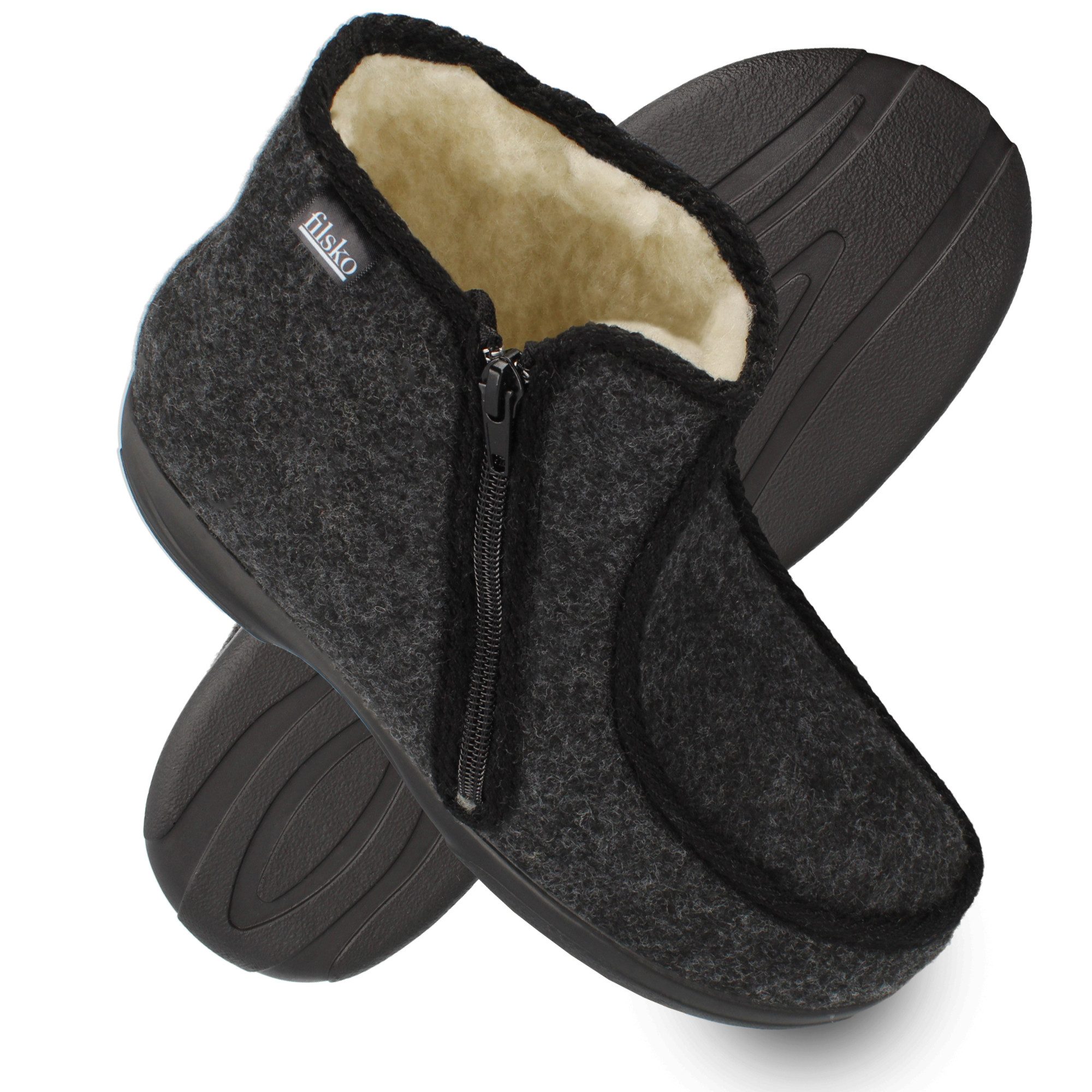 Brrr, ist das kalt! Mit diesen gefütterten Herren Hausschuhen bleiben deine Füße auch an den kältesten Tagen richtig kuschelig warm. Die Slip-On-Pantoffeln sind super einfach an- und auszuziehen, haben ne bequeme gepolsterte Einlegesohle und ne rutschfeste Gummisohle. Flacher Absatz (3 cm) und runde Zehen geben dir genug Komfort für längeres Tragen. Perfekt für zu Hause, aber auch robust genug für kurze Gänge nach draußen. Reduziert die Belastung für Gelenke und sorgt für bessere Körperhaltung. Sieht dazu noch stylisch aus in schwarz - dezent genug für jeden Geschmack. Ob beim Fernsehen, Arbeiten im Homeoffice oder einfach nur relaxen - diese Hausschuhe werden schnell deine Lieblinge! In Größe 50 für die meisten Füße passend. Einfach anziehen und wohlfühlen!