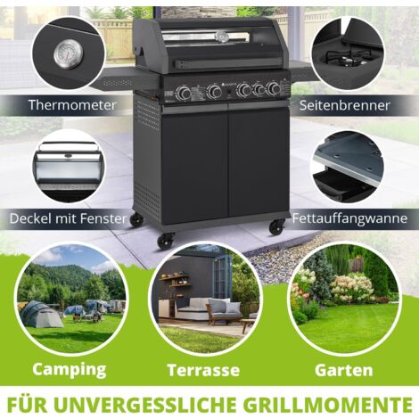 Grillfans aufgepasst! Dieser Lagerfeuer Gasgrill ist dein neuer bester Freund für unvergessliche Gartenpartys. Mit 4 Hauptbrennern plus extra Seitenbrenner wird jedes Grillfest zum kulinarischen Erlebnis!
