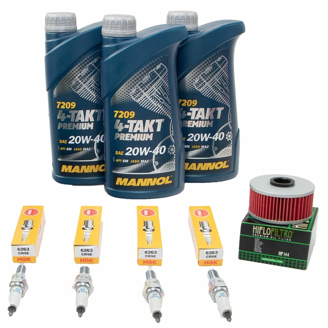 Yamaha FZR 600 Besitzer aufgepasst! Dieses Komplett-Wartungspaket macht die nächste Inspektion zum Kinderspiel. Enthalten sind 3 Liter 10W40 teilsynthetisches Motoröl von Mannol, ein K&N Ölfilter (KN-144) und 4 NGK Zündkerzen (CR9E).
