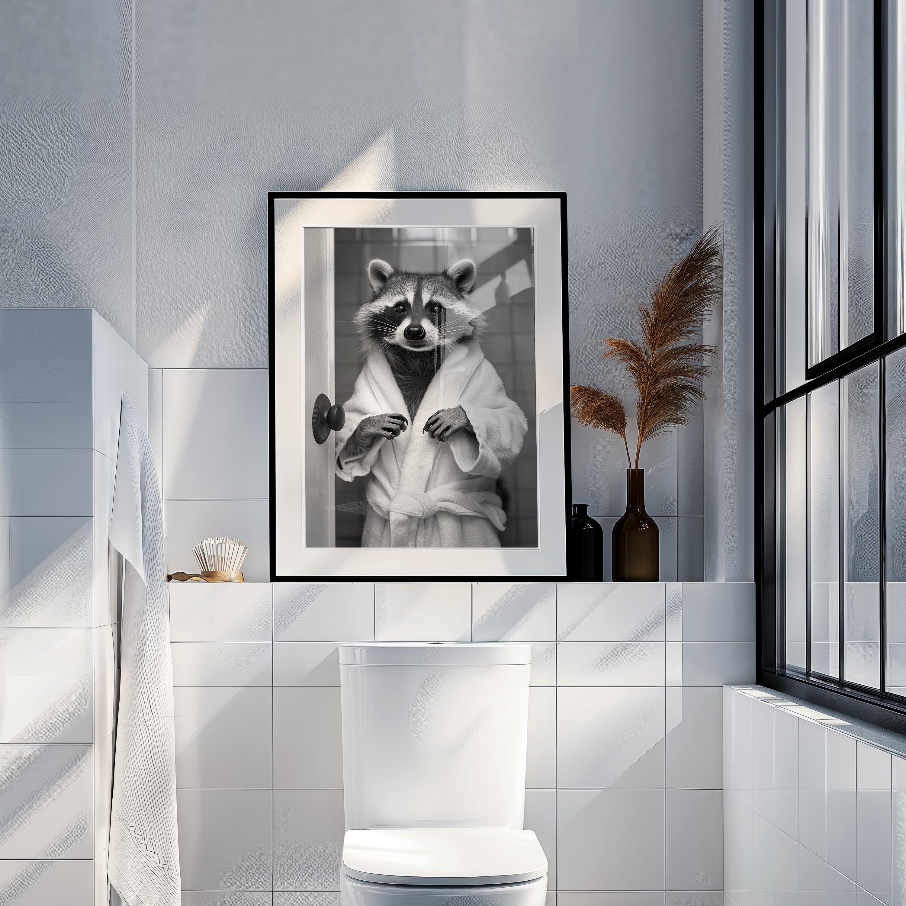 Dieses lustige Waschbär-Poster bringt Leben in jedes Badezimmer oder Gäste-WC! Das schwarz-weiß Design zeigt einen putzigen Waschbär beim Zähneputzen - einfach urkomisch und garantiert ein Gesprächsstarter. Mit 30x20cm ist es die perfekte Größe für kleine Wände oder über dem Waschbecken.