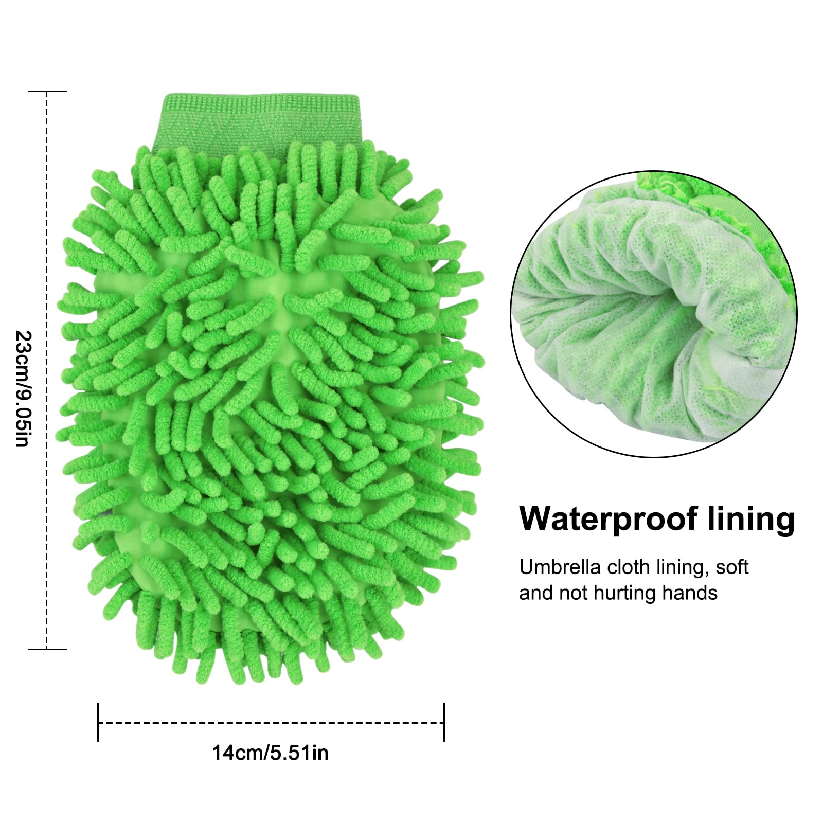 4 Stück Mikrofaser Waschhandschuhe - Chenille Autowaschhandschuhe 14x23cm