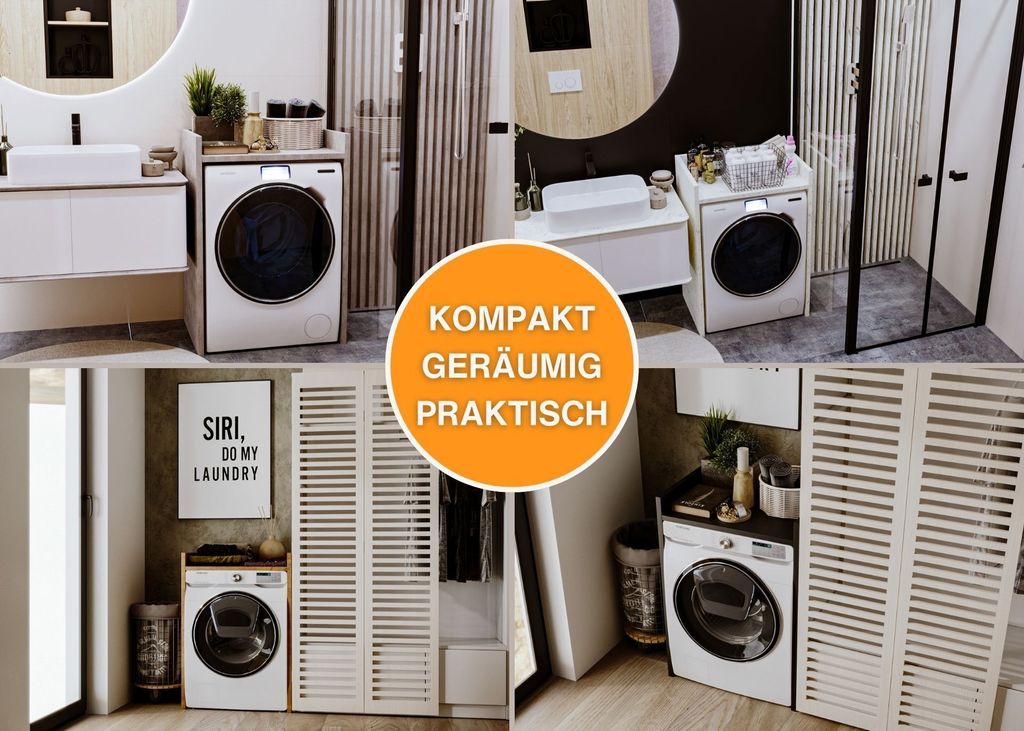 Endlich Ordnung im Bad! Dieser praktische Überbauschrank verwandelt den Platz über Ihrer Waschmaschine in wertvollen Stauraum. Mit 180 cm Höhe und 64 cm Breite bietet er reichlich Platz für Waschmittel, Weichspüler, Handtücher und Putzzeug. Die Kombination aus offenen Fächern für häufig gebrauchte Dinge und geschlossenen Schränken mit Doppeltüren für diskrete Aufbewahrung ist einfach genial. Aus robusten 16 mm Möbelplatten gefertigt, hält dieser Schrank jahrelang. Die pflegeleichte weiße Oberfläche passt zu jedem Badezimmer-Stil und lässt sich easy reinigen. Ob im Bad, in der Waschküche oder sogar in der Garderobe - dieser Schrank bringt System in Ihr Zuhause. Einfach aufstellen und sich über die gewonnene Ordnung freuen!