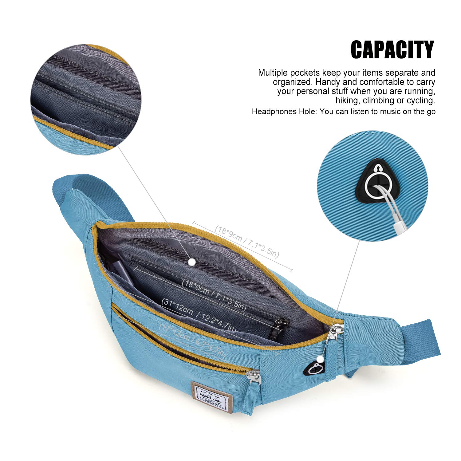 Die Tasche lässt sich nicht nur als Bauchtasche tragen, sondern auch als Brust- oder Umhängetasche. Mit dem speziellen Kopfhörer-Auslass kannst du deine Musik genießen, ohne dass Kabel stören. Perfekt für Fahrradfahrer, Wanderer oder Städtereisen!