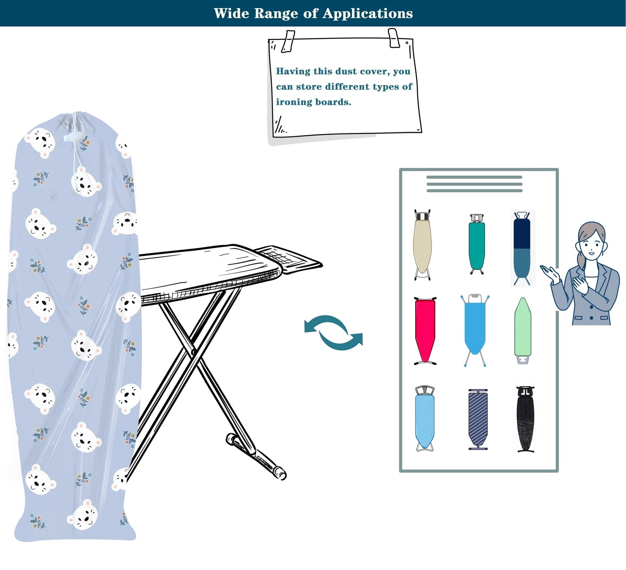 Dein Bügeltisch verdient den besten Schutz! Diese praktische Abdeckung hält Staub, Motten und Feuchtigkeit fern, wenn du nicht bügelst. Mit Maßen von 167x63cm passt sie auf die meisten Standard-Bügeltische (am besten vorher nachmessen!). Das hochwertige Oxford-Material ist wasserabweisend und schimmelresistent - perfekt für Lagerung im Keller oder Abstellraum. Der Kordelzug-Verschluss sorgt für enganliegenden Sitz, damit kein Staub eindringen kann. Einfach über den Bügeltisch stülpen, Kordel zuziehen - fertig! Sieht mit dem schönen Muster auch noch gut aus, wenn der Bügeltisch mal sichtbar steht. Leicht zu reinigen - einfach abwischen oder abbürsten. Besonders praktisch wenn du nicht oft bügelst und der Tisch sonst staubig werden würde. Macht die Aufbewahrung so viel einfacher und dein Bügeltisch bleibt immer sauber und gebrauchsfertig. Ein kleines Teil das einen großen Unterschied macht!