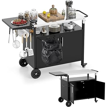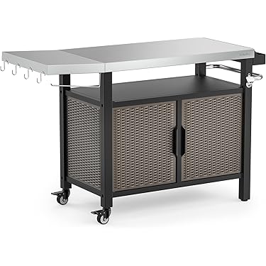 Diese robuste Abdeckung schützt deinen Grillwagen oder Outdoor-Esstisch zuverlässig vor Regen, Wind und Staub! Aus 600D Oxford-Gewebe mit 100% wasserdichter Vinyl-Beschichtung hält sie auch bei Dauerregen alles trocken. Die versiegelten Nähte und der verstellbare Zugbund unten sorgen für perfekten Sitz. Maße: 121,9 x 61 x 89,9 cm (LxBxH). Die Mesh-Lüftungsschlitze beugen Kondenswasser vor, während der praktische Griff das An- und Ablegen erleichtert. Mit Stauraumtasche für kleines Zubehör. Hält deinen Edelstahl-Grillwagen rostfrei und sauber - so bleibt alles bereit für die nächste Grillparty!