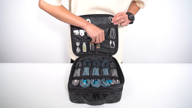 Deine Lockenstäbe und Glätteisen verdienen den besten Schutz! Diese hitzebeständige Tasche ist genau das, was du brauchst. Aus Polyester gefertigt und mit Aluminiumfolie gefüttert, hält sie Temperaturen bis 250°C stand - deine Frisierwerkzeuge können also sicher abkühlen. Mit 8x8,5x45cm bietet sie genug Platz für Lockenstab, Bürste und Co. Wasserdicht und leicht (nur 108g) ist sie perfekt für unterwegs. Das faltbare Design spart Platz in Schublade oder Koffer. Ob für Reisen, Gym oder einfach zu Hause - mit dieser Tasche bist du immer organisiert. Schwarz sieht sie zudem noch richtig schick aus. Deine Frisierwerkzeuge sicher verwahrt!