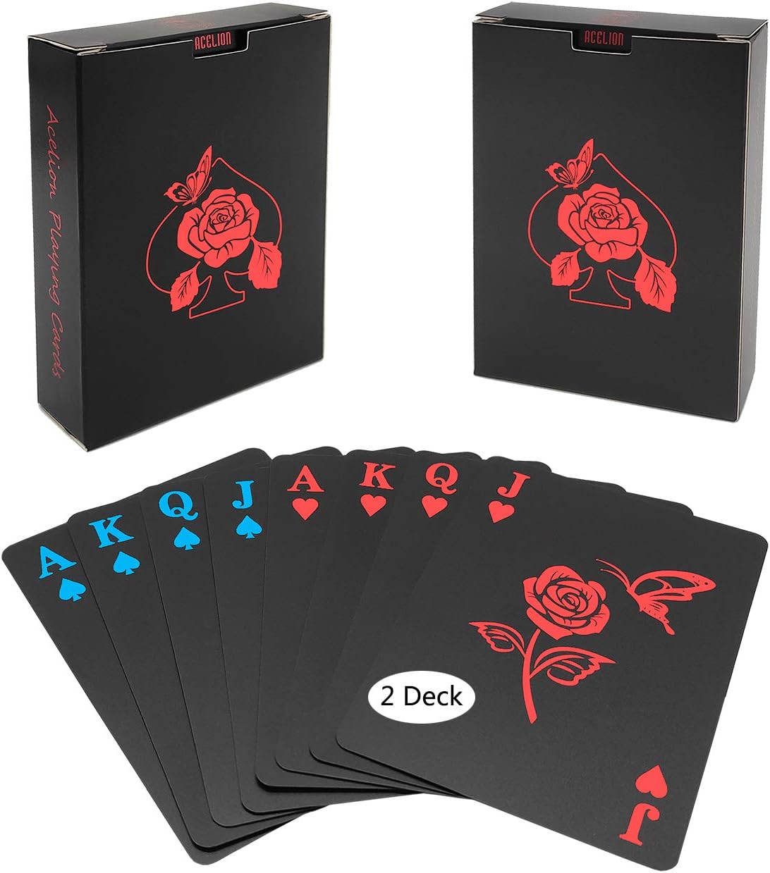 Na, Lust auf eine Runde Poker? Mit diesen ACELION Spielkarten machst du das nächste Spiel noch besser! Das Deck besteht aus 54 Karten - 52 Spielkarten plus 2 Joker. Hergestellt aus hochwertigem, flexiblem Kunststoff, der sich angenehm anfühlt und super leicht mischen lässt. Das Beste: Sie sind 100% wasserdicht! Egal ob ein Getränk umkippt oder du sie mit an den Strand nimmst - keine Sorge vor Flecken oder Nässe. Einfach unter fließendem Wasser abwaschen, und sie sehen aus wie neu. Die Oberfläche ist glatt und griffig, sodass sie nicht so schnell aus der Hand rutschen. Perfekt für Partys, Spieleabende oder als Geschenk für Kartenspiel-Fans. Mit dem schicken Black Diamond Design sehen sie dazu noch richtig stylisch aus. Ob Poker, Blackjack oder Rommé - mit diesen Karten wird jedes Spiel zum Erlebnis. Und weil sie so robust sind, halten sie auch wilderen Spielrunden stand. Viel Spaß beim Spielen!