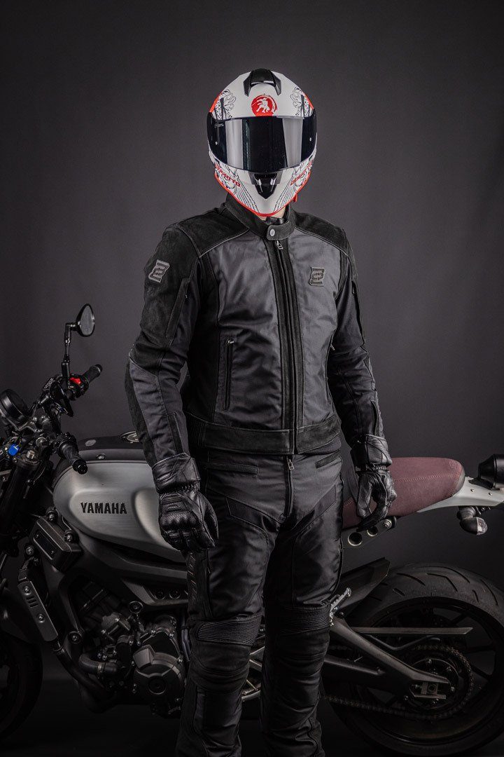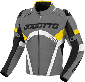Wow, was für eine Jacke! Die Bogotto Blizzard-X ist dein perfekter Begleiter für jede Motorradtour - ob kurz zum Bäcker oder lang in den Urlaub. Die robuste Polyester-Jacke hat echtes Rindsleder an Schultern und Ärmeln, das hält was aus! Und das Beste: Sie ist komplett wasserdicht mit einer speziellen Membrane. Da macht dir Regen gar nichts aus!\\n\\nFür die Sicherheit sind Level 2 Schulter- und Ellenbogenprotektoren schon drin, und für den Rücken kannst du easy einen SAS-Tec Protektor nachrüsten. Das Netz-Innenfutter sorgt für super Belüftung an heißen Tagen, und die herausnehmbare Thermo-Jacke hält dich an kühlen Tagen kuschelig warm.\\n\\nPraktisch sind auch die vielen Taschen: 2 Fronttaschen, 2 am Netzfutter, 4 an der Thermo-Jacke und eine Innentasche - da findet alles Platz! Die Belüftungsreißverschlüsse an der Taille und die verstellbaren Ärmel und Hüfte sorgen für den perfekten Sitz.\\n\\nUnd mit dem Reißverschluss unten kannst du sie mit der passenden Bogotto Blizzard-X Hose verbinden - dann bist du komplett ausgerüstet! Reflektierende Details machen dich auch bei Dunkelheit gut sichtbar. Egal ob Stadt, Landstraße oder Autobahn - mit dieser Jacke bist du sicher und stylisch unterwegs!