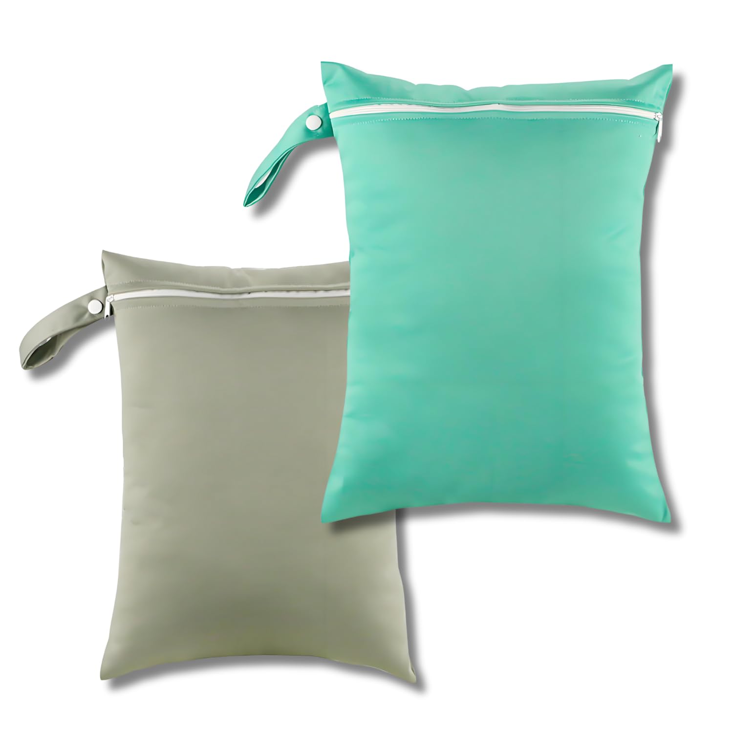 Praktische Wetbags für unterwegs! Im 2er-Set in grau und weiß, jeweils 40x30cm groß. Aus wasserdichtem Polyester-TPU - hält Flüssigkeiten zuverlässig drin. Mit robustem Reißverschluss und praktischem Tragegriff.