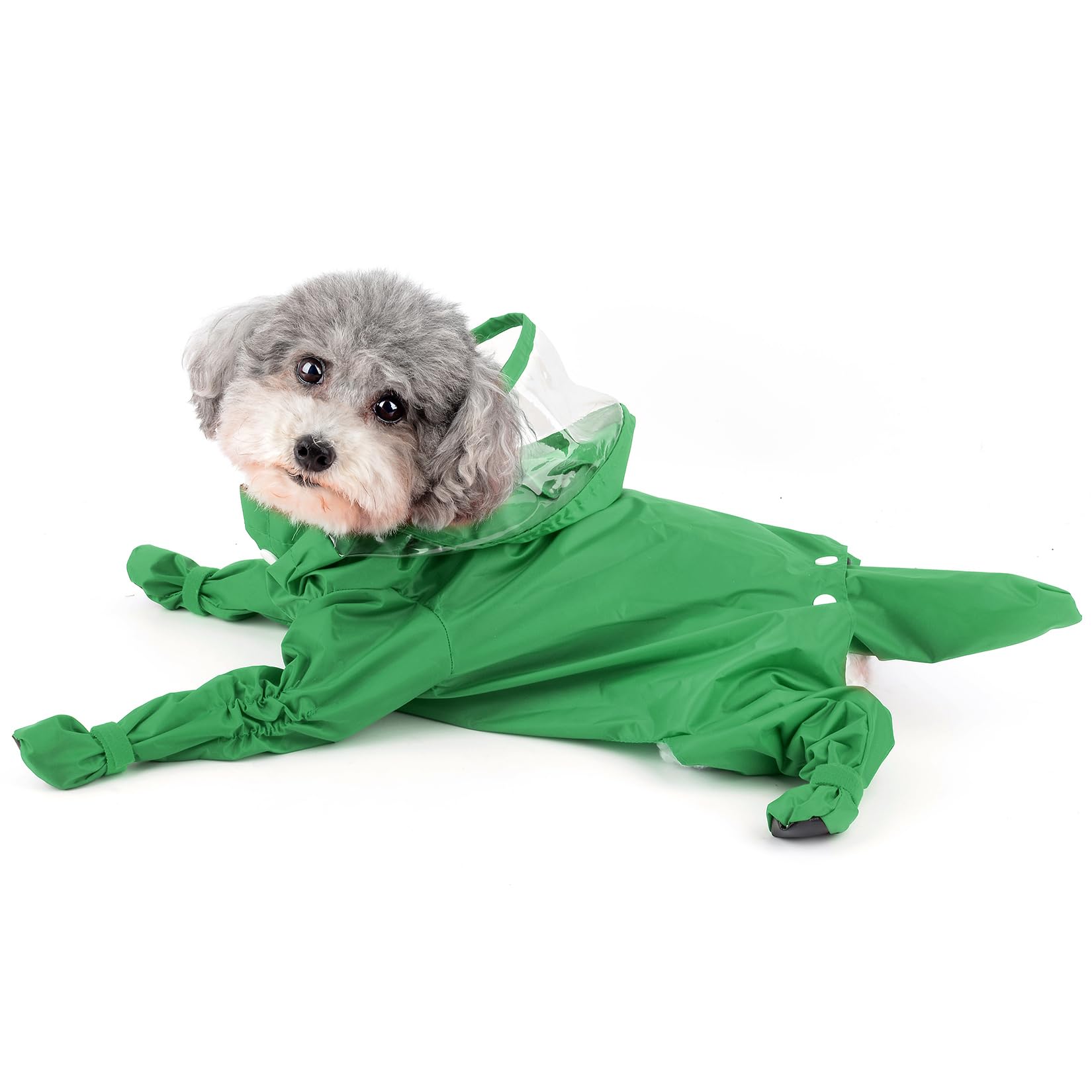 Dein Hund muss auch bei Regen raus? Mit diesem niedlichen Regenmantel bleibt dein kleiner Liebling trocken und sieht dabei super süß aus! Der vierbeinige Design schützt nicht nur den Rücken, sondern auch die Beinchen. Mit praktischem Hut und transparenter Krempe - so wird der Regen abgehalten, ohne die Sicht zu versperren. Aus ultra-wasserabweisendem, aber atmungsaktivem Material. Die Füße haben weiche Klettverschlüsse für perfekten Sitz. In Größe L für Hunde mit 45cm Brustumfang und 37cm Rückenlänge, ideal für 3,5-4,5kg. Passt perfekt für Chihuahua, Yorkshire, Mops und andere kleine Rassen. Einfach anziehen und los geht's - kein Nasswerden mehr!