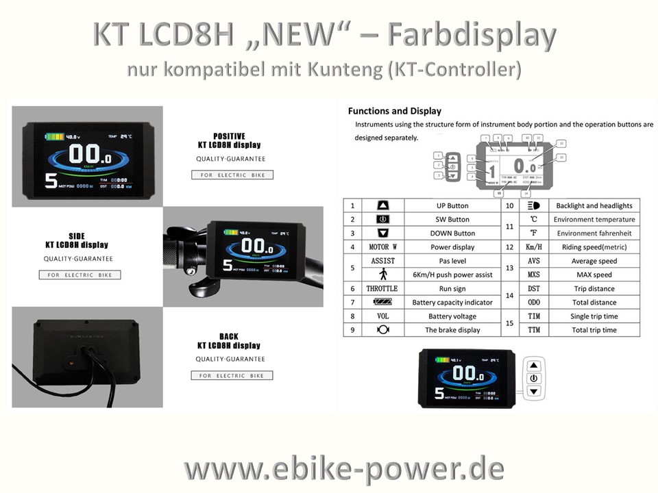 Hey, hast du schon unser KT-LCD8H E-Bike Display gesehen? Das ist echt praktisch - mit nem klaren Farbbildschirm von 45x65mm. Egal ob Regen oder Spritzer, das Display hält dicht! Super einfach zu bedienen: Einfach Power-Taste drücken und los geht's. Du siehst auf einen Blick deine Geschwindigkeit, wie weit du schon gefahren bist und wie viel Akku noch da ist. Passt an fast jedes E-Bike mit 24V, 36V oder 48V. Kompakt und leicht, nimmt kaum Platz weg. Perfekt für den täglichen Einsatz - ob Stadt oder Waldwege. Lieferung inklusive Display, Fernbedienung, Halterung und allem was du zum Montieren brauchst. So macht E-Biken noch mehr Spaß!