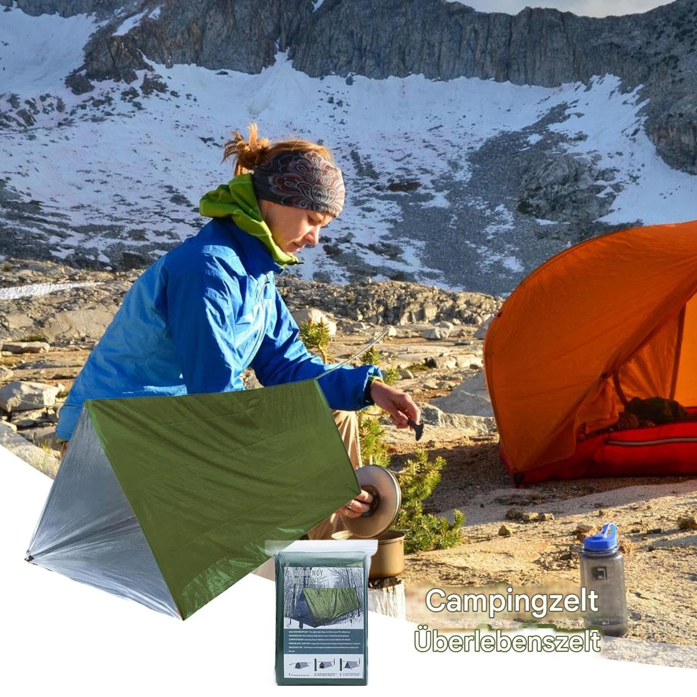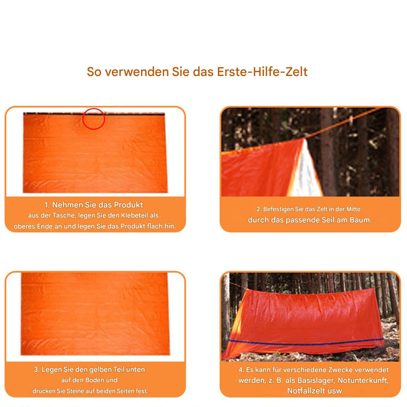Dieses Überlebenszelt ist dein Retter in der Not! Aus Aluminium-Verbundfolie, voll wasserdicht und winddicht. Aufgeklappt 150x237cm groß, zusammengepackt nur 12x20cm - super kompakt. Die orange Farbe macht dich für Rettungskräfte gut sichtbar. Reflektiert die Körperwärme und hält dich warm. Kann als Zelt, Plane oder Schlafsack verwendet werden. Perfekt für Camping, Wandern, Bergsteigen oder einfach als Notfallausrüstung im Auto. Leicht, robust und lebensrettend - ein Must-Have für jeden Outdoor-Fan!