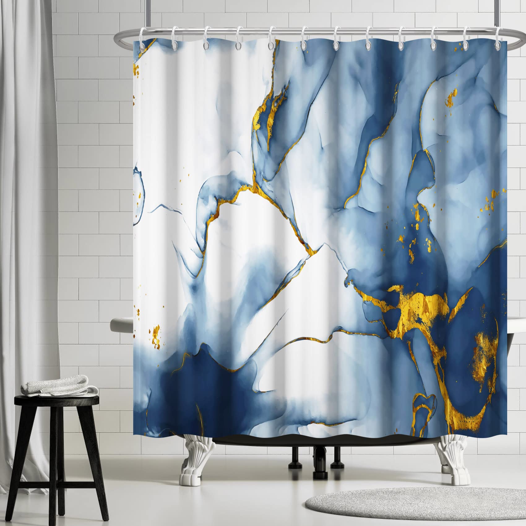 Wow, dieser Duschvorhang bringt richtig Style ins Badezimmer! Der abstrakte Marmor-Look in Blau sieht nicht nur mega edel aus, sondern ist auch super praktisch. Dank der wasserabweisenden Beschichtung bleiben deine Badezimmerflächen trocken - keine Pfützen mehr nach dem Duschen! Das Set ist komplett mit 12 praktischen Haken, die sich leicht anbringen lassen. Die Maße von 183x183 cm passen perfekt zu den meisten Standard-Duschkabinen und Badewannen. Besonders clever: Die Metallösen sind extra verstärkt, damit nichts reißen kann. Und wenn's mal dreckig wird? Kein Problem! Einfach in die Waschmaschine stecken oder mit einem feuchten Tuch abwischen. Der Stoff fühlt sich übrigens richtig angenehm an und bildet diese kleinen Wassertropfen, die einfach abperlen. So bleibt dein Badezimmer immer ordentlich und stylisch. Perfekt also für alle, die ihr Bad aufhübschen wollen ohne viel Aufwand. Das 3D-Design macht sich super zusammen mit deinen Handtüchern und Badematten - da wird duschen zum richtigen Erlebnis!