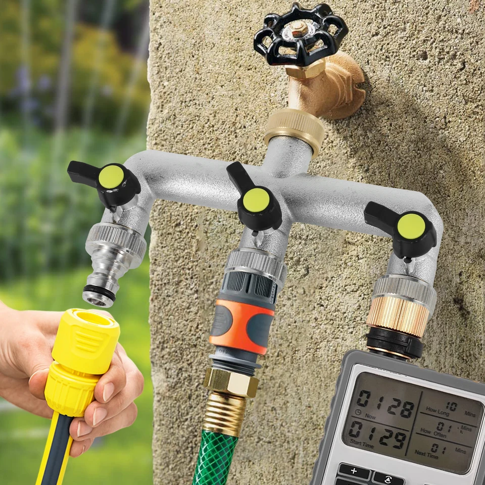 Super praktisch: Einmal den Rasensprenger und gleichzeitig die Tropfbewässerung für die Beete anschließen! Oder Waschmaschine und Gartenschlauch parallel nutzen.
