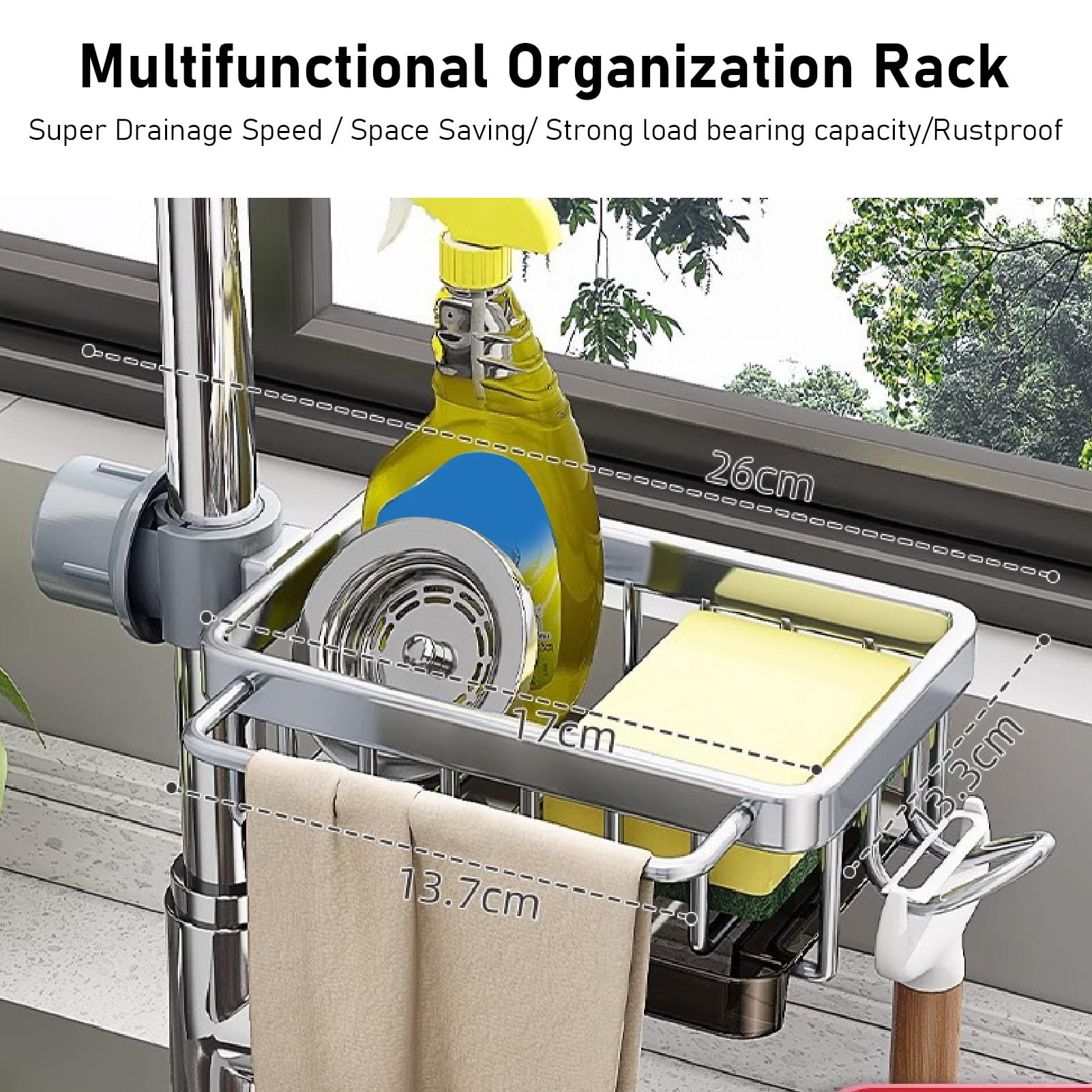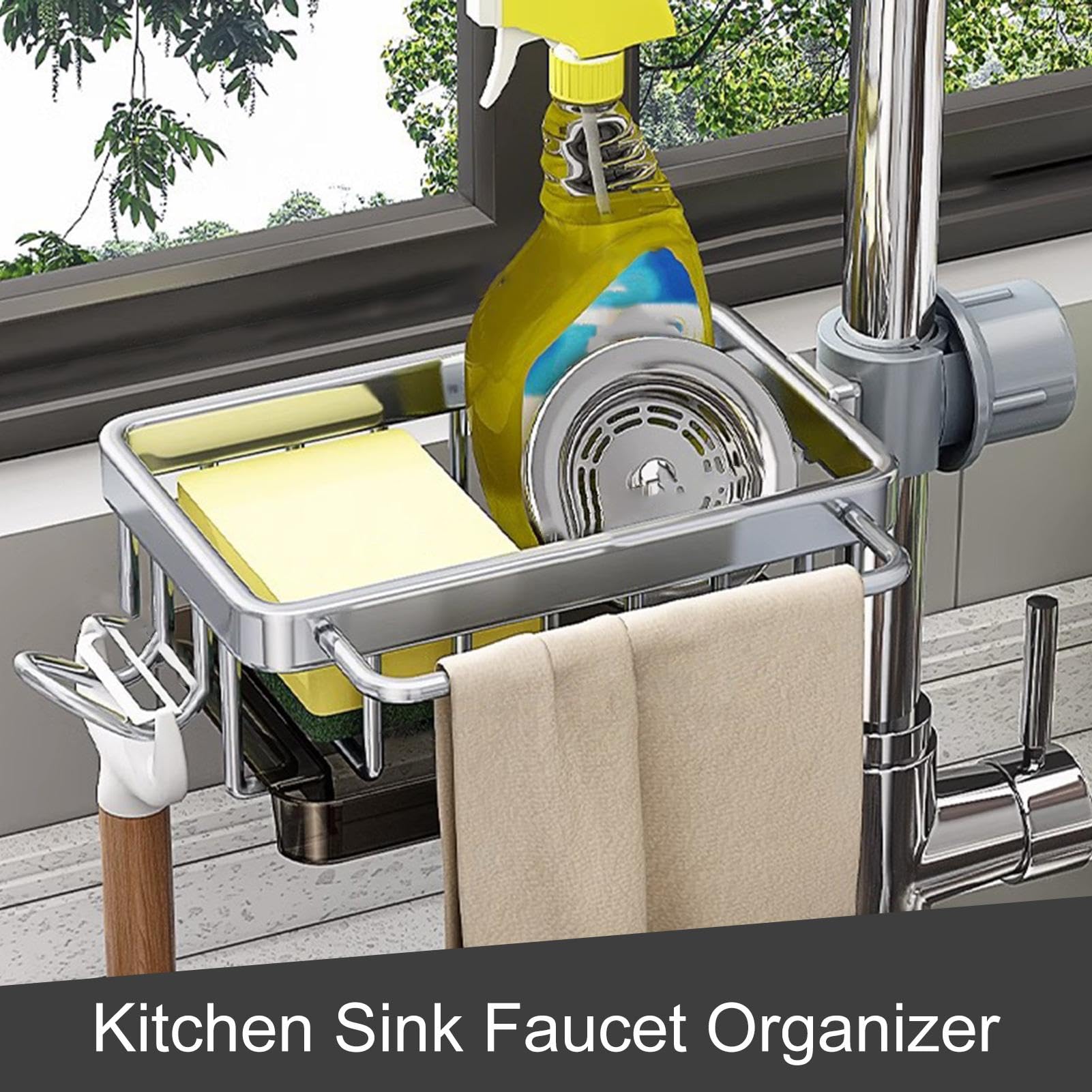 Schluss mit nassen, herumliegenden Schwämmen! Dieser praktische Wasserhahn-Schwammhalter aus Aluminium und ABS-Kunststoff sorgt für Ordnung an der Spüle. Einfach über den Wasserhahn stülpen und den Knopf festziehen - keine Werkzeuge nötig! Die Tropfschale verhindert lästige Wasserflecken und die Belüftungslöcher sorgen für schnelles Trocknen. Perfekt nicht nur für Schwämme, sondern auch für Bürsten, Seifen oder Shampooflaschen. Mit 17,5x11cm kompakt, aber robust genug für den täglichen Gebrauch.