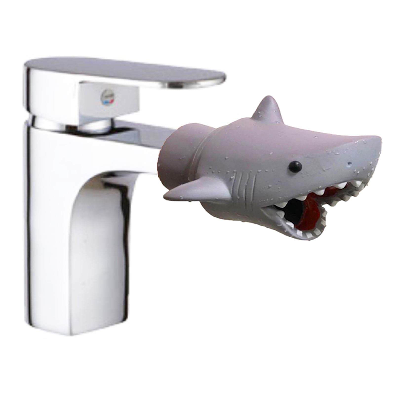Händewaschen macht mit diesem süßen Hai-Aufsatz plötzlich Spaß! Die niedliche Cartoon-Hai Form weckt die Neugier deiner Kinder und motiviert sie zum regelmäßigen Händewaschen. Aus weichem, biegsamem Silikon gefertigt - keine scharfen Kanten, absolut kindersicher! Einfach über den vorhandenen Wasserhahn stülpen und schon kommt das Wasser näher an dein Kind ran. Kein lästiges Hinstellen auf wackelige Tritthocker mehr! Das reduziert nicht nur die Unfallgefahr, sondern spart auch noch Wasser weil weniger daneben geht. Die Größe von 9,5x8x11cm passt auf die meisten handelsüblichen Wasserhähne. Einfach drüberziehen - kein Werkzeug nötig! Das graue Design ist dezent und passt in jedes Badezimmer. Perfekt für Kleinkinder und Kindergartenkinder die noch nicht so groß sind. Aus hochwertigem Silikon das nicht reißt, verblasst oder sich verzieht - hält also auch bei häufigem Gebrauch ewig! Mach deinem Kind das Händewaschen zum Vergnügen - und dir das Leben leichter!