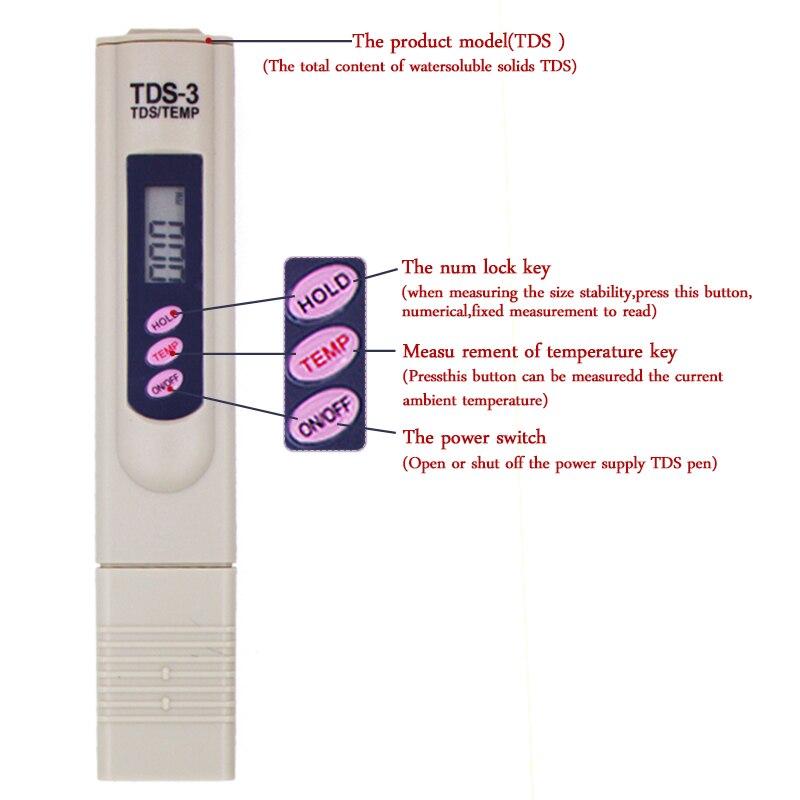 Weißt du eigentlich, was in deinem Wasser steckt? Mit diesem TDS-Meter findest du's raus! Misst den Gesamtgehalt an gelösten Feststoffen von 0-9990ppm - also ob dein Leitungswasser rein ist, der Wasserfilter richtig arbeitet oder das Aquarienwasser in Ordnung ist. Einfach einschalten, ins Wasser halten und sofort den Wert ablesen. Mit Hold-Funktion zum Festhalten des Messwerts und Auto-Off nach 10 Minuten. Kompakt, handlich und super einfach zu bedienen. Batterien (2x LR44) musst du separat besorgen. Ein Muss für alle, die Wert auf sauberes Wasser legen - ob zu Hause, im Garten oder beim Hobby!