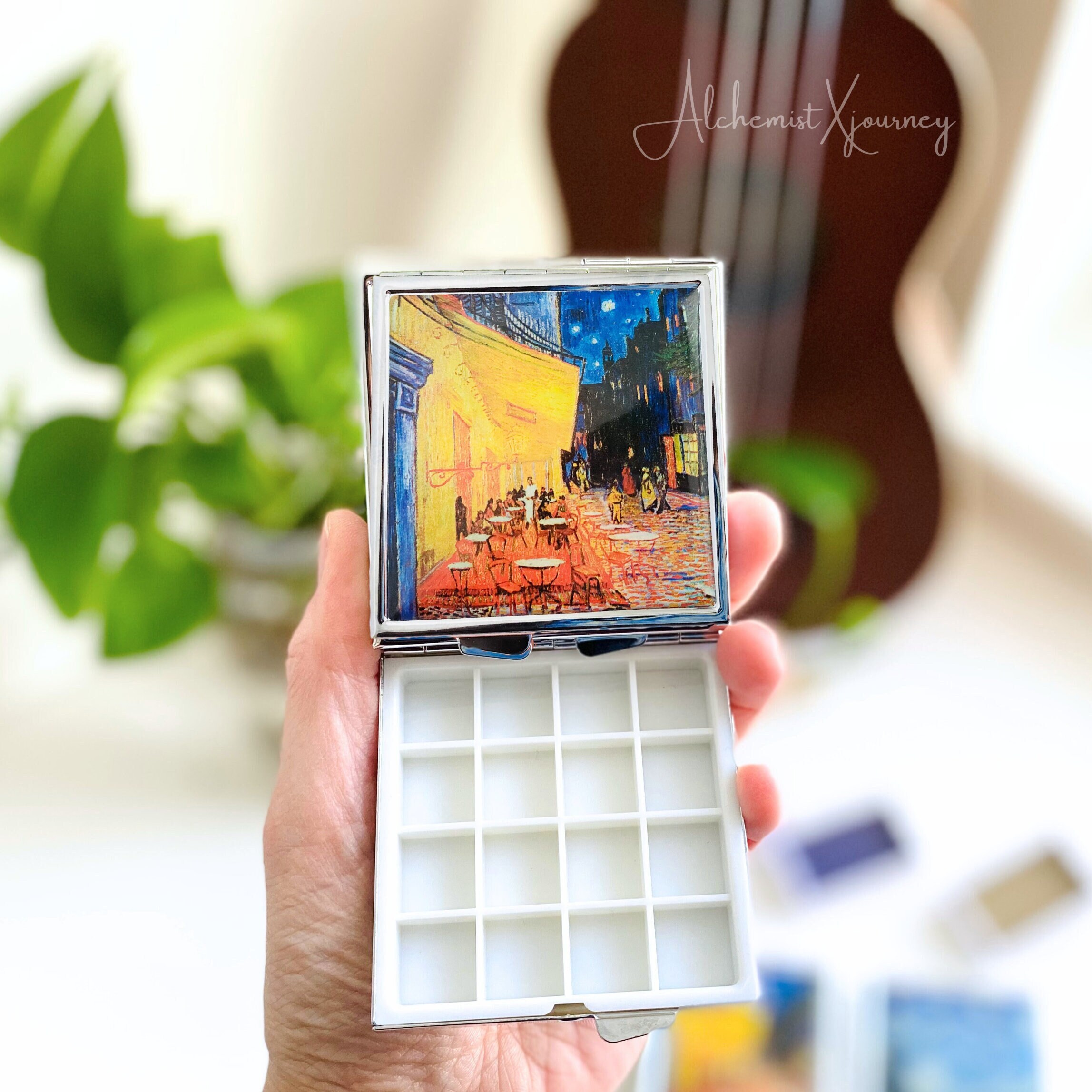 Für alle, die ihre Kunst überallhin mitnehmen wollen! Diese niedliche kleine Farbbox ist dein perfekter Begleiter für unterwegs. Super kompakt - nur 7,3 x 7 x 2,5 cm groß - passt sie in jede Jackentasche oder den Rucksack. Drin ist alles, was du brauchst: Mehrere Fächer für deine Farben und sogar ein praktischer Reinigungsbecher für deine Pinsel. Der Deckel ist auslaufsicher, also keine Sauerei in der Tasche! Ob du jetzt im Park skizzieren willst, auf Reisen Inspiration findest oder im Klassenzimmer malst - dieses Set ist immer dabei. Aus robustem Zinn gefertigt, hält es was aus und die faltbaren Paletten sind super praktisch. Es gibt sie in 4 verschiedenen Farben, da findet jeder seinen Favoriten. Perfekt für Kunststudenten, Hobby-Maler oder einfach alle, die gerne kreativ sind. Einfach aufklappen und loslegen - deine nächste Kunstsession kann beginnen, wann und wo du willst!