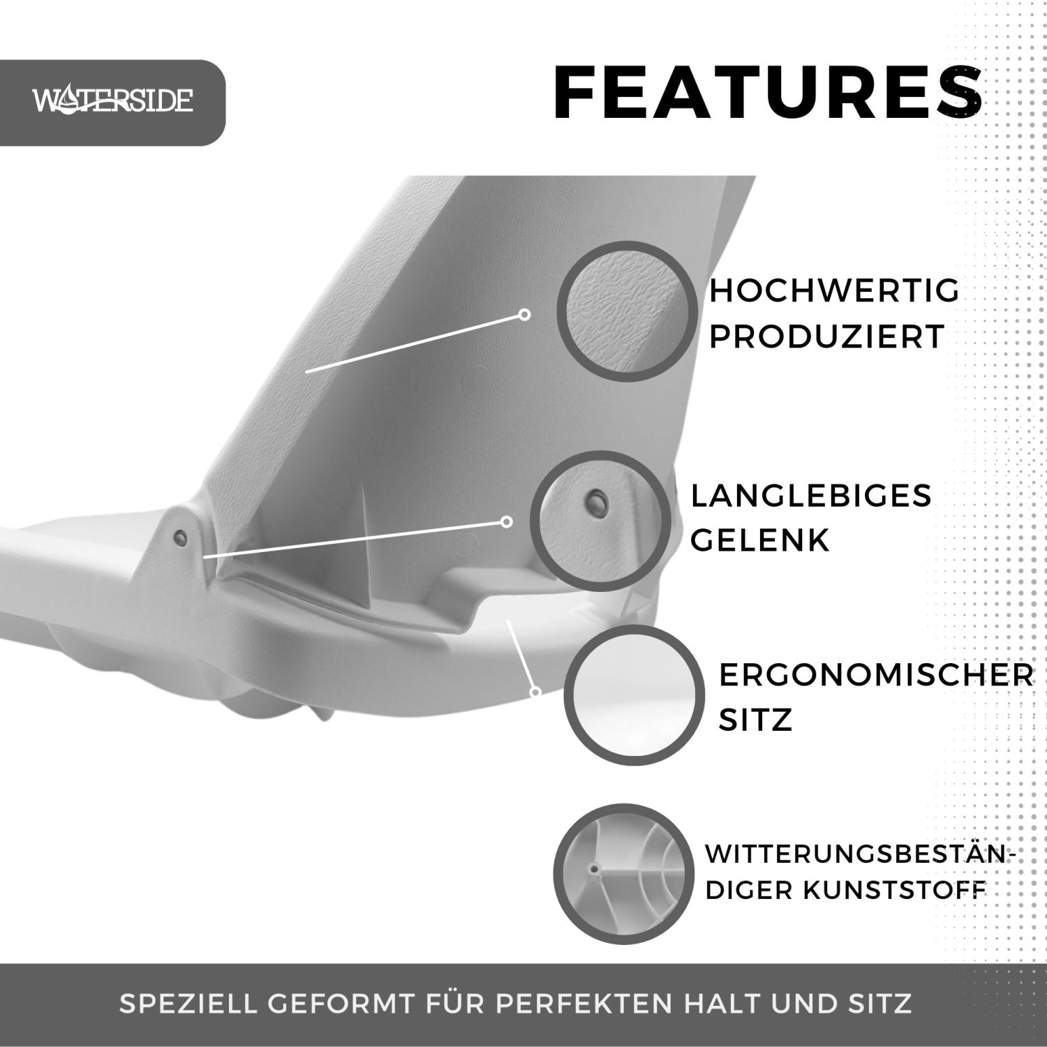 Angeln oder Bootfahren soll bequem sein! Der Waterside Captain Bootssitz mit hoher Rückenlehne macht's möglich. Extra dick gepolstert für stundenlangen Komfort - selbst bei langen Angelausflügen. Das blaue Kunstleder ist wasserabweisend, pflegeleicht und sieht dazu noch richtig stylisch aus. Die witterungsbeständige Bodenplatte hält auch bei rauem Wetter stand. Einfach montieren - Schrauben sind schon dabei. Passt auf die meisten Drehteller und Sitzsäulen. Ob Profi-Angler oder Hobby-Kapitän - mit diesem Sitz genießt du jede Minute auf dem Wasser in vollem Komfort!