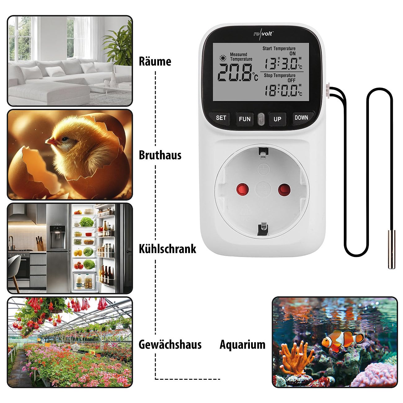 Mach dein Zuhause smart und spare Energie! Diese geniale WLAN Steckdose von Wattive regelt die Temperatur von Heizgeräten oder Klimaanlagen komplett automatisch. Einfach in die Steckdose stecken, Gerät anschließen und mit der Smart Life App verbinden - schon kannst du per Smartphone, Alexa oder Google Assistant die Temperatur steuern. Verschiedene Modi für jeden Bedarf: manuell, programmiert, Urlaubsmodus. Bis zu 6 Zeitfenster pro Tag einstellbar. Das LED-Display zeigt alle wichtigen Daten auf einen Blick. Perfect für elektrische Heizungen, Ventilatoren oder kleine Klimageräte. Plug & Play - keine Installation nötig!