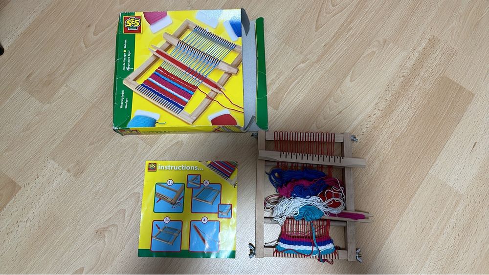 Kreativität fördern war nie so schön! Dieses Webrahmen-Set von Bibykivn bringt Kindern ab 5 Jahren die traditionelle Kunst des Webens näher. Der 29x19 cm große Webrahmen aus naturbelassenem Holz hat schön abgerundete, splitterfreie Kanten - absolut kindersicher! Im Set ist alles enthalten, was kleine Web-Anfänger brauchen: 1 Webrahmen, 2 Schiffchen, 12 bunte Wollfäden, 2 Ziergarne und 1 Feinzwirn. So kann sofort mit dem Weben begonnen werden - kein zusätzlicher Einkauf nötig. Das Weben fördert spielerisch die Feinmotorik, Konzentration und Geduld. Kinder können wunderschöne Wandteppiche, Schals, Untersetzer oder andere textile Kunstwerke erschaffen. Perfekt für regnerische Nachmittage, den Kunstunterricht oder als gemeinsame Aktivität mit der Familie. Ein pädagogisch wertvolles Geschenk, das Kreativität und handwerkliches Geschick fördert - und dabei jede Menge Spaß macht!