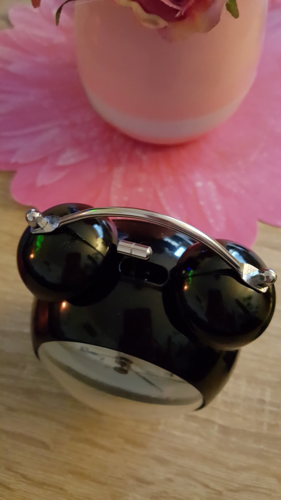 Der Wecker läuft mit einer AA-Batterie (1,5V, nicht im Lieferumfang) und hat auf der Rückseite 'ne Taste zum Beleuchten. Das Zifferblatt ist schön groß und gut ablesbar - die schwarzen Zeiger heben sich super vom weißen Untergrund ab.