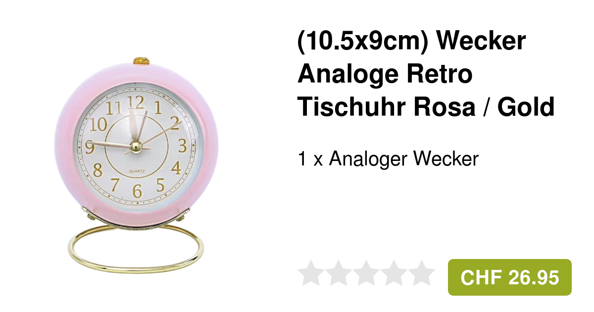 Oh, dieser Wecker ist ja süß! Der rosa-silberne Retro-Wecker bringt sofort Oma's-Zeit-Feeling in dein Zimmer. Mit nur 13x9x5 cm ist er perfekt für den Nachttisch, aber auch als Küchenuhr oder Deko-Stück super.