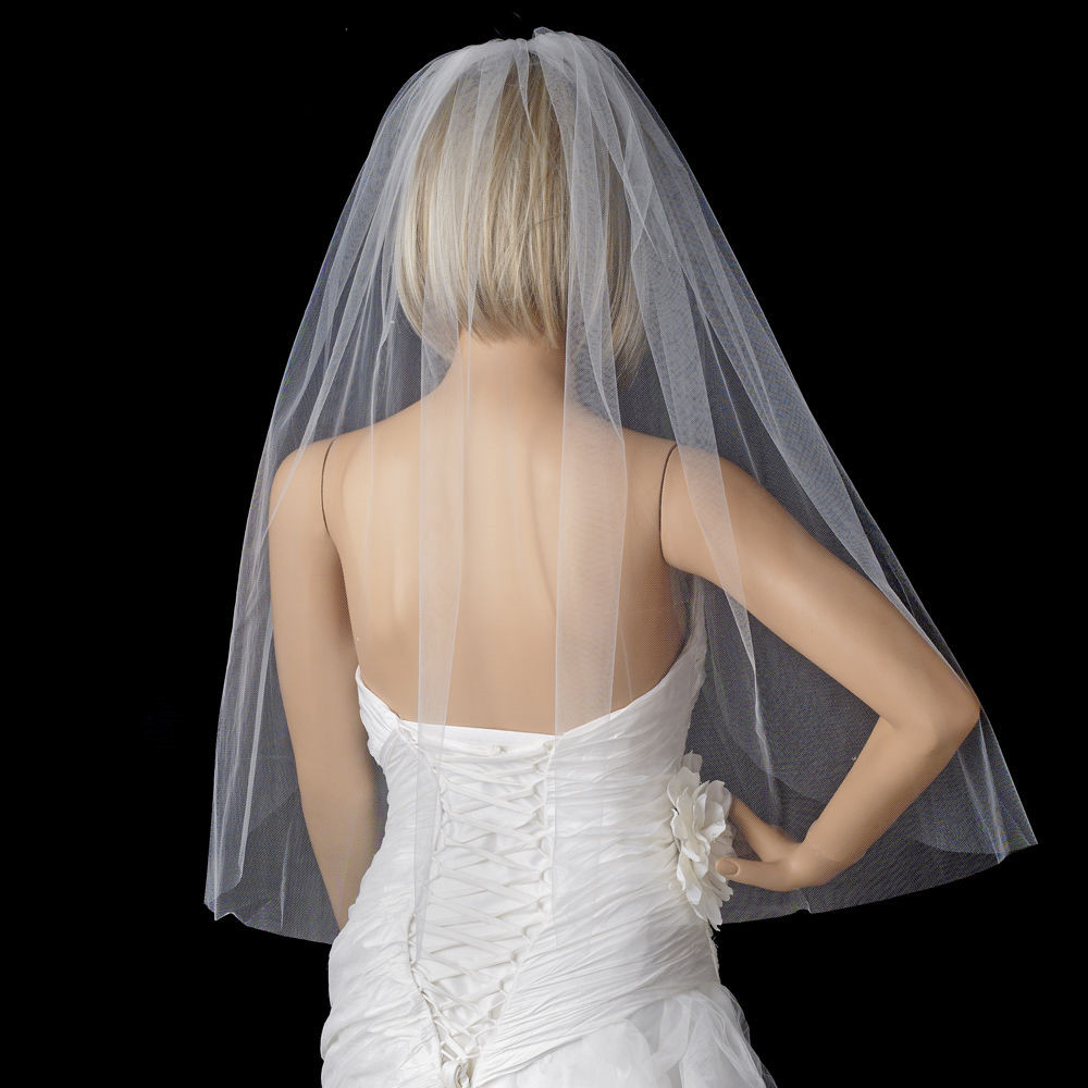 Perfekt für den großen Tag! Dieser 2-stufige Schleier ist einfach traumhaft. Längen: 65cm und 85cm - Gesamt 150cm. Aus weichem Tüll - liegt schön. Mit festem Kamm - sitzt sicher im Haar. In Weiß, Elfenbein oder Schwarz erhältlich. Macht jedes Brautkleid komplett. Ideal für Kirchhochzeit, Standesamt oder Gartenparty. Einfach anlegen und zur schönsten Braut werden!