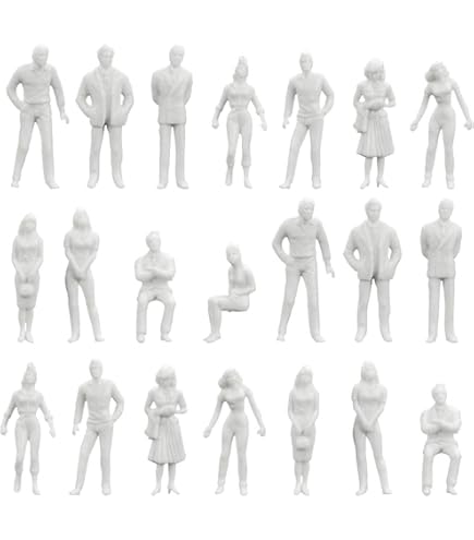 Bring Leben in deine Modelle! Diese 25 detailreichen Figuren im Maßstab 1:50 (Spur 0) verwandeln Architekturmodelle und Modelleisenbahn-Landschaften in lebendige Szenen. Jede Figur zwischen 3-4cm groß und fein ausgearbeitet - perfekt für Architekten, Studenten und Modellbau-Fans. In strahlendem Weiß und unbemalt - ideal zum individuellen Gestalten. Die Mischung aus stehenden und sitzenden Posen sorgt für natürliche Arrangements. Aus ungiftigem, bleifreiem Kunststoff - sicher in der Handhabung. Ob für Bahnsteige, Straßenszenen oder Gebäude-Eingänge - diese Figuren machen jedes Diorama authentisch. Einfach aus der Verpackung nehmen und positionieren - so einfach war Modellbau noch nie! Perfekt für Messen, Präsentationen oder das private Hobby. Dein Modell verdient diese Qualität!