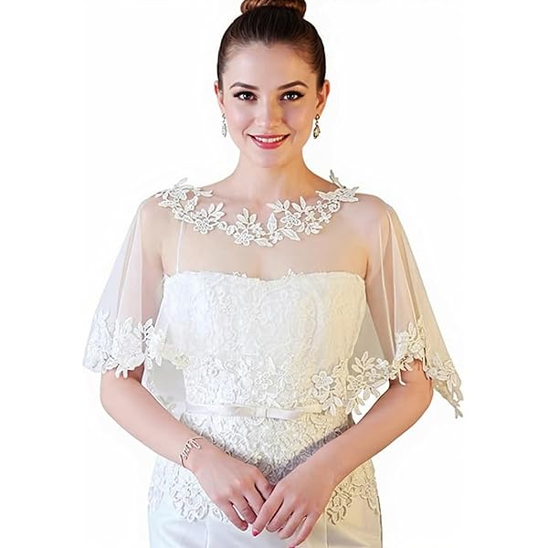 XUYUH Hochzeits-Schal Weiß - 3-lagiger Tüll Mit Blumen-Dekor