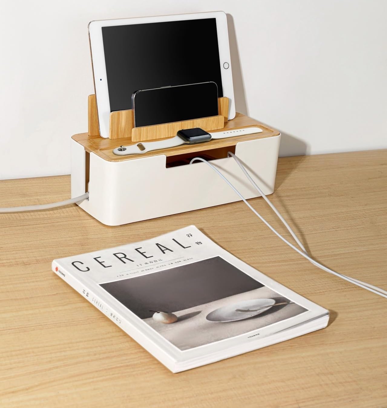 Hast du auch dieses Kabelchaos unter deinem Schreibtisch? Diese weiße Kabelbox bringt Ordnung in dein Kabelgewirr! Mit 30x16x13cm ist sie groß genug für Steckdosenleisten, Ladegeräte und alle Kabel. Aus hochwertigem ABS-Material - stoßfest und feuerhemmend. Die seitlichen Öffnungen lassen die Kabel raus und sorgen für gute Belüftung. Der sichere Deckel schützt vor neugierigen Kinderhänden und Haustieren. Einfach Steckdosenleiste rein, Kabel durch die seitlichen Schlitze führen und Deckel schließen - schon sieht alles ordentlich aus! Perfekt für Schreibtisch, Wohnzimmer oder Home-Office. Die Bambusabdeckung sieht dazu noch stylisch aus. Reduziert Staub und macht deine Stromversorgung sicherer. Einfach bestellen und endlich das Kabelchaos besiegen! Auch ein tolles Geschenk für ordnungsliebende Freunde.