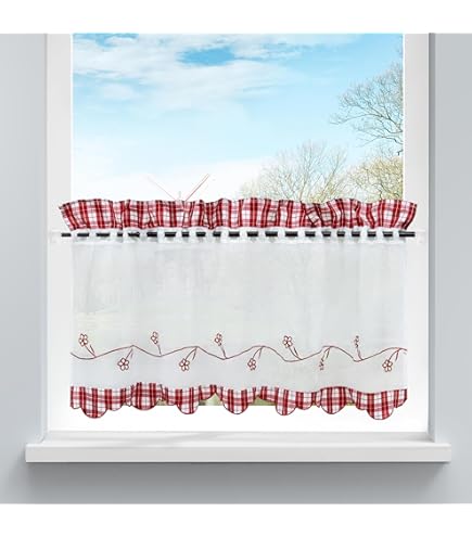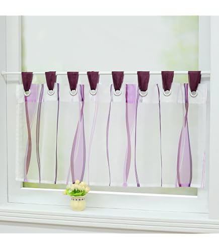 Suchst du nach charmanten Gardinen für deine Küche oder dein Wohnzimmer? Diese 2 Scheibengardinen im Landhausstil sind genau das Richtige! In reinem Weiß mit zarter Spitze und lila Voile-Elementen verleihen sie jedem Raum eine gemütliche, ländliche Atmosphäre. Mit den Maßen 45x120cm (HxB) passen sie perfekt für kleinere Fenster oder als dekorative Ergänzung. Hergestellt aus 100% Polyester sind sie nicht nur langlebig, sondern auch super pflegeleicht. Die halbtransparenten Kurzstores filtern das Tageslicht sanft und schaffen eine helle, freundliche Stimmung - ohne den Raum zu verdunkeln oder die Sicht nach draußen zu beeinträchtigen. Perfekt für alle, die eine leichte und luftige Fensterdekoration suchen! Falls die Standardgröße nicht passt: Wir bieten auch individuelle Anfertigungen an. Einfach aufhängen und sofort die wohnliche Atmosphäre genießen!