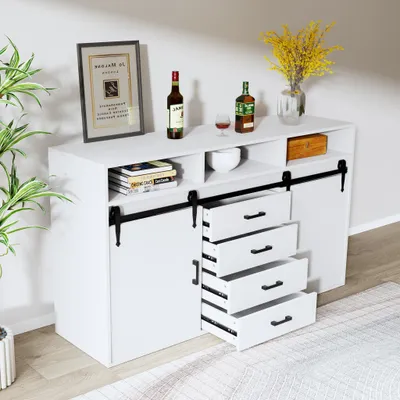 Dieses BESTWANTED Sideboard ist einfach der Hammer! Mit 150x35x72 cm bietet es richtig viel Stauraum für dein Wohnzimmer. Die Hochglanz-Oberfläche in Weiß sieht mega edel aus und reflektiert das Licht super! Das geniale Feature: Eingebaute LED-Beleuchtung mit 16 Farben und 4 Blitzeffekten! Per Fernbedienung steuerbar - dimmbar, ein- und ausschaltbar! Mit 2 Türen und 3 Schubladen hast du genug Platz für DVDs, Zeitschriften, Decken und all den anderen Kram, der sonst rumliegt! Aus stabilem MDF und Spanplatten gefertigt - das Teil hält ewig! Die Oberseite ist perfekt für deine Multimedia-Geräte oder Deko-Stücke! Wird in 2 Paketen geliefert - keine Sorge, beide kommen bei dir an! Einfach zusammenbauen (Anleitung liegt bei) und schon verwandelst du dein Wohnzimmer! Damit wird Aufräumen zum Vergnügen - versprochen!