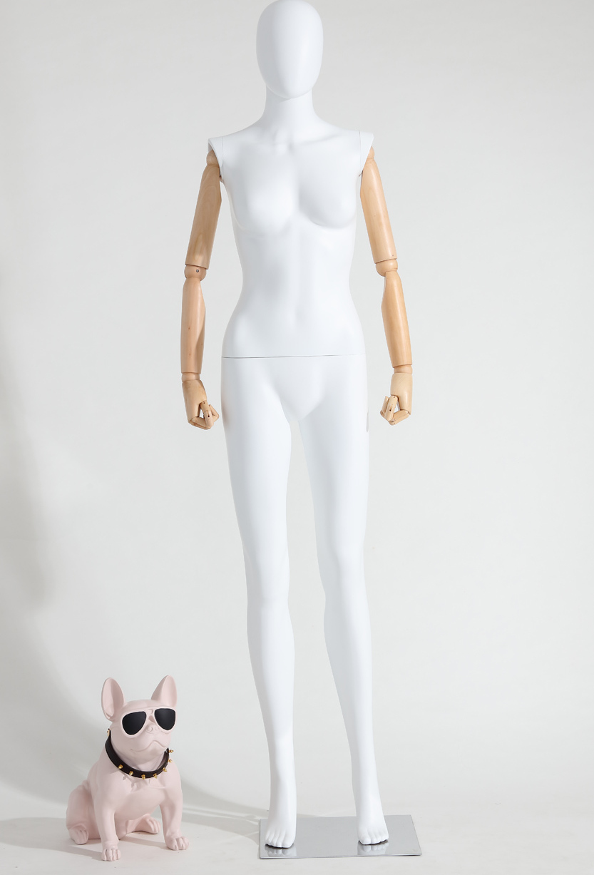 • Eurohandisplay Schaufensterpuppe 178cm - Weiß Matt Mit Holzarmen & Standplatte