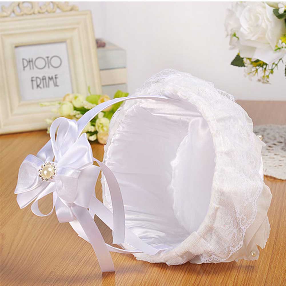 Hochzeit Blumenmädchen Korb | Weiß Mit Spitze | 22x15cm | Romantische Dekoration