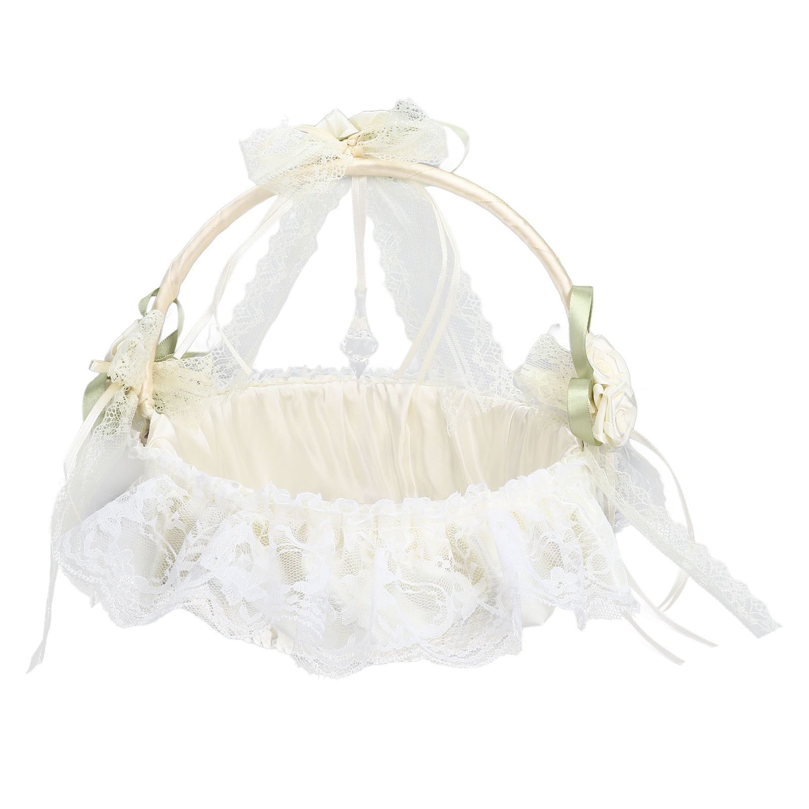 • Hochzeit Blumenmädchen Korb | Weiß Mit Spitze | 22x15cm | Romantische Dekoration