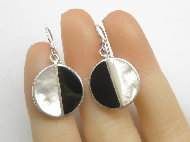 JANDY SHINE Ohrringe - Weiß Perlmutt & Schwarz Onyx 925 Silber