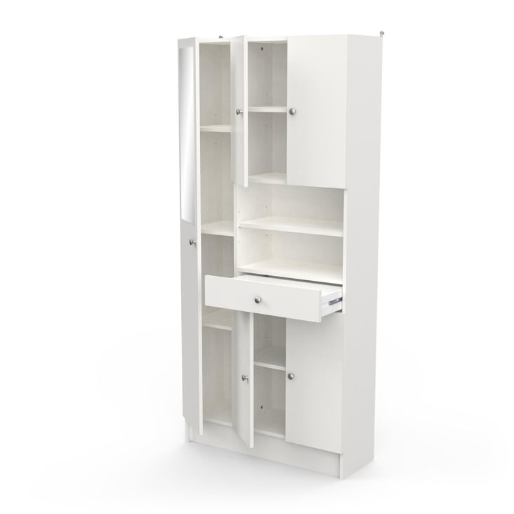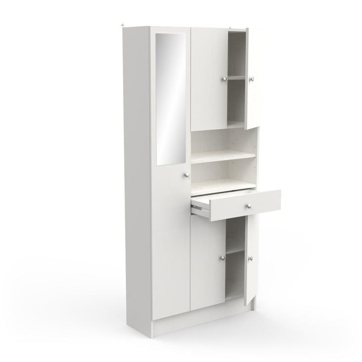 Das besondere Feature: An den Türen sind praktische Fächer angebracht - perfect für Cremes, Zahnpasta und andere Kleinigkeiten. Metallstangen sorgen dafür, dass nichts rausfällt.