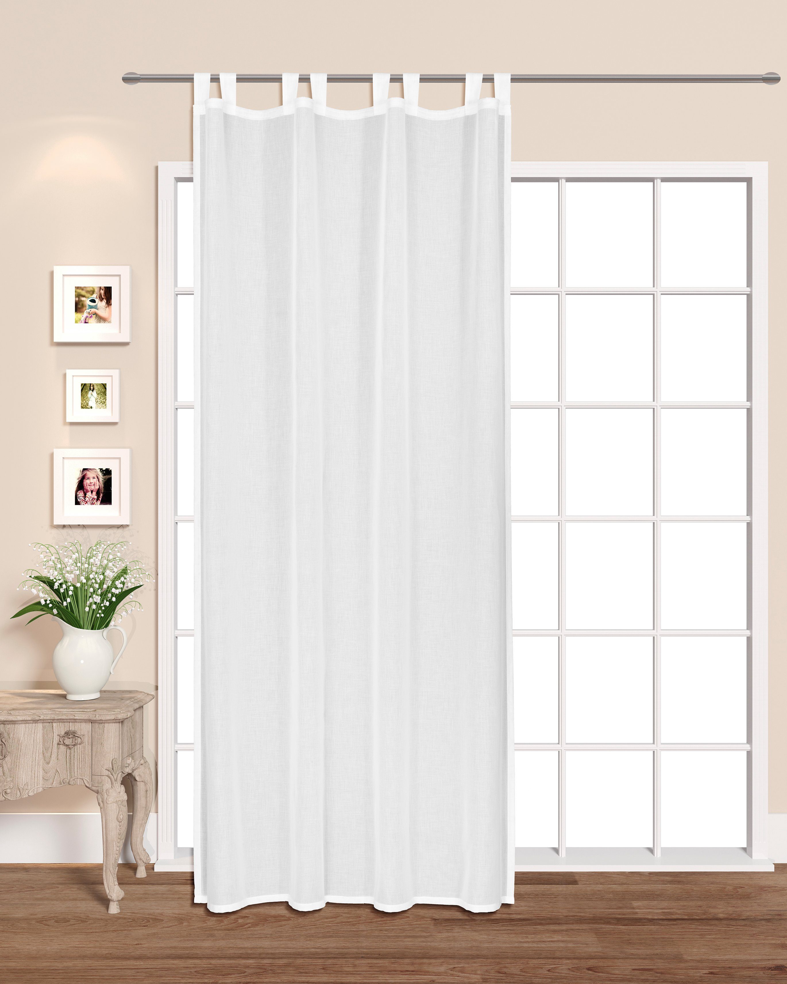 Hey, diese super praktische Batist-Gardine kommt fertig montiert - einfach auspacken, aufhängen und schon macht dein Wohnzimmer oder Küchenfenster was her! Mit den Maßen 300x50 cm (Breite x Höhe) passt sie perfekt in viele Standardfenster. Das weiße Batist-Material lässt schön diffuses Licht durch, aber gibt dir trotzdem genug Privatsphäre. Besonders cool: Das integrierte Kräuselband macht das Aufhängen mega einfach.\\n\\nDie Gardine ist total pflegeleicht - einfach in die Waschmaschine und schon sieht sie wieder aus wie neu. Batist ist ein richtig hochwertiges Material, das sich richtig edel anfühlt und lange hält. Übrigens: Die Gardine wird in der EU produziert, das garantiert gute Qualität.\\n\\nPerfekt für alle, die ihr Zuhause schnell aufwerten wollen - ob Mieter oder Eigentümer. Sie sieht nicht nur gut aus, sondern hilft auch dabei, das Licht im Raum optimal zu steuern. Für obere Fensterbereiche ist sie ideal als dekorativer Abschluss. Und das Beste: Du musst nicht nähen oder basteln - alles schon fertig vorbereitet!