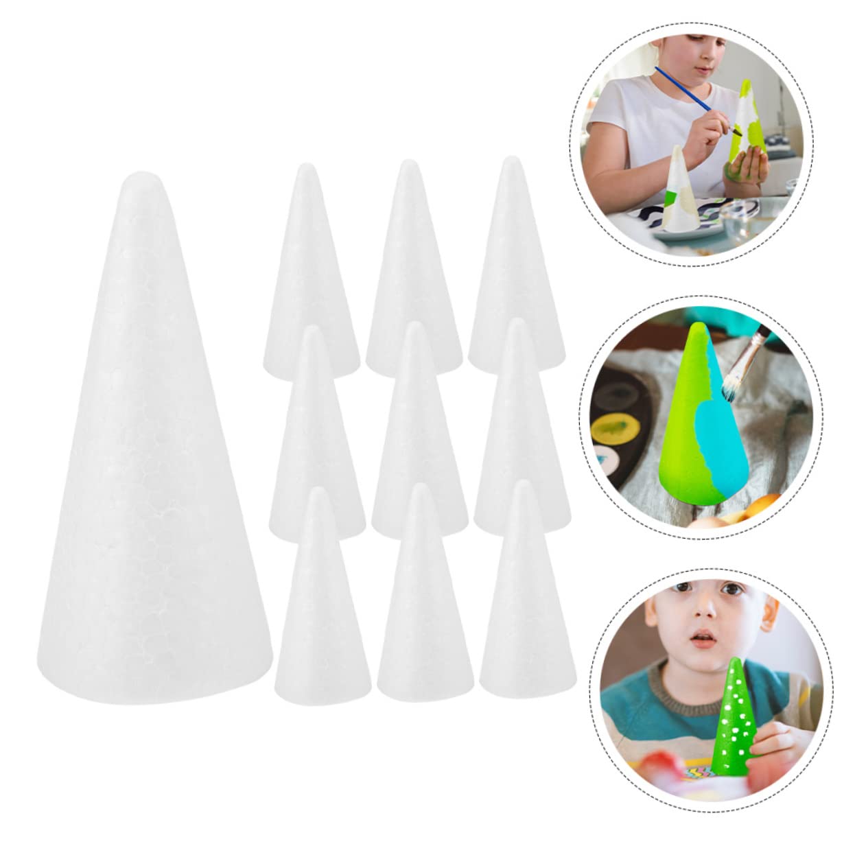 Kreativität ohne Grenzen! Diese 12 weißen Schaumstoff-Kegel von Veemoon sind perfekt für alle Bastelprojekte. Mit 15cm Höhe und glatter Oberfläche lassen sie sich super bemalen, bekleben und verzieren. Ideal für Weihnachtsbäumchen, Deko-Objekte, Blumenarrangements oder Cake-Pop-Ständer. Aus schadstofffreiem Material - sicher auch für Kinderbasteln. Leicht und einfach zu verarbeiten: einfach deine Ideen umsetzen! Perfekt für Weihnachtsdekoration, Geburtstagspartys oder Schulprojekte. Das 12er-Set reicht für mehrere Bastelarbeiten oder Gruppenprojekte. Deiner Kreativität sind keine Grenzen gesetzt - ob bunt bemalt, mit Glitzer verziert oder als Basis für fantasievolle Figuren!