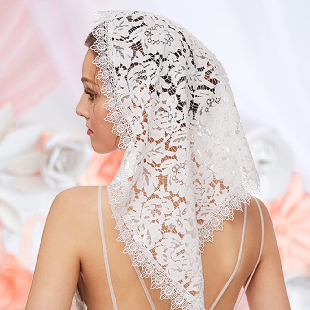 • RUNRAYAY Weißer Dreiecksschleier - Spitze Mantilla Für Katholische Kirche
