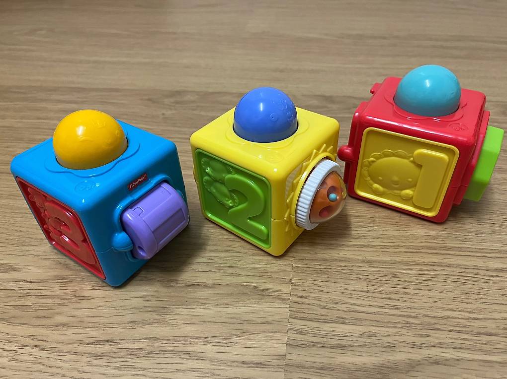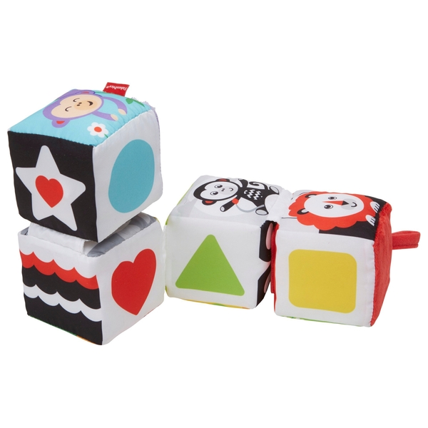 Für die Allerkleinsten gibt's diese super süßen Stoffwürfel von Fisher-Price! Die vier weichen Würfel sind miteinander verbunden und voller Überraschungen: Hier ein Spiegel, da eine Rassel, bunte Tiere und Zahlen.