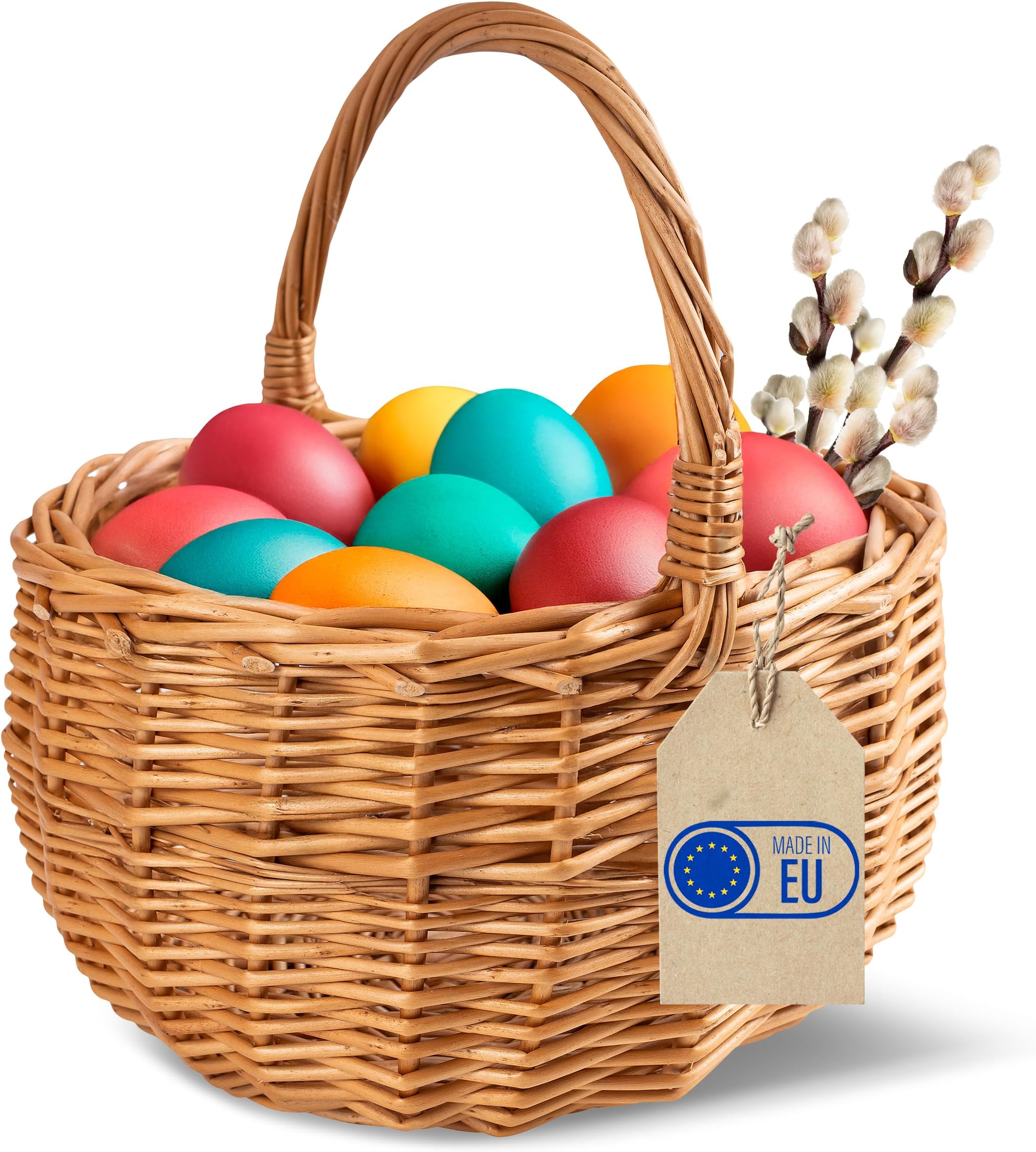 Traditioneller Osterbast für die Eiersuche! Dieser niedliche Weidenkorb wird in Handarbeit aus natürlicher Weide geflochten. Mit praktischem Henkel für kleine Hände. Ungelassen in natürlicher Farbe - authentisch und umweltfreundlich. Leicht und stabil zugleich. Vielseitig verwendbar: als Osterkorb, für Obst, Blumen oder als Deko-Element. Perfekt für Kinder zur Ostereiersuche oder als Geschenkverpackung. Bringt frühlingshafte Stimmung ins Haus!