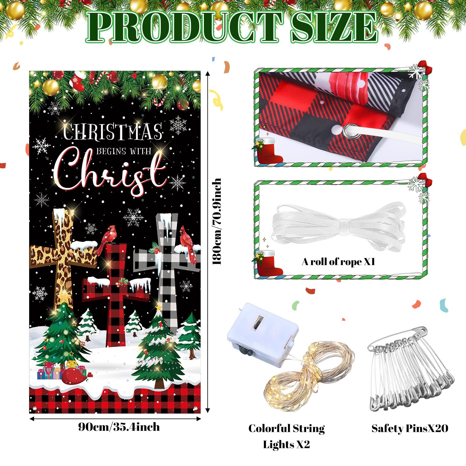 Weihnachtsstimmung inklusive! Dieser fröhliche Weihnachts-Banner verwandelt deine Tür sofort in ein festliches Portal. Mit 180x80 cm ist er die perfekte Größe für Haustüren, Durchgänge oder als Hintergrund für deine Weihnachtsfotos. Aus hochwertigem Polyestergewebe gefertigt, ist er wetterfest und hält auch mal einen Regenschauer aus. Das Design mit Weihnachtskränzen, Schneeflocken und Nussknackern sorgt für ultimative Festtagsstimmung. Mit dem 6 Meter langen Seil und den vier Ösen lässt er sich super einfach aufhängen und bleibt auch bei Wind stabil. Perfekt für Weihnachtsfeiern, Heiligabend oder einfach nur, um deinem Zuhause diesen besonderen Weihnachtsflair zu verleihen. Kleiner Tipp: Bei Falten einfach vorsichtig bügeln. Ob drinnen oder draußen - dieser Banner macht überall eine gute Figur und bringt jeden in Weihnachtsstimmung!
